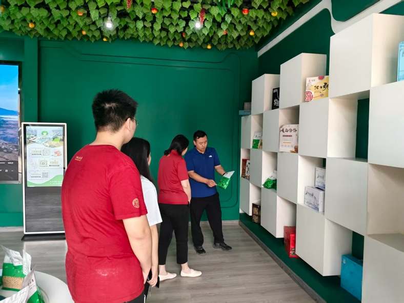 8月21日,访谈团来到石桥镇大槐树村,走进村党群服务中心和农产品电商企业,详细了解“认养农业+精深加工+电商”模式。在电商展示厅,琳琅满目的苹果脆片、荞麦酥、布艺产品整齐摆放,根据中国银行总部驻大槐树村第一书记张津铭的介绍,这些都是通过线上渠道销往全国各地的“淳化味道”。