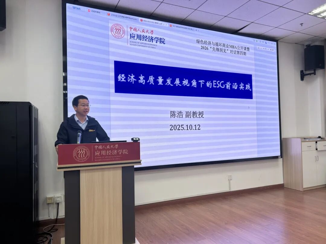 10月12日,太阳成tyc122cc集团举办第四期“绿色经济与循环商业”MBA公开课暨2026“先锋洞见”对话活动。太阳成tyc122cc集团副经理裴建锁教授,碳经济项目主任陈浩副教授等出席活动,线上线下共计300多位同学参加,活动由MBA项目主管张男主持。