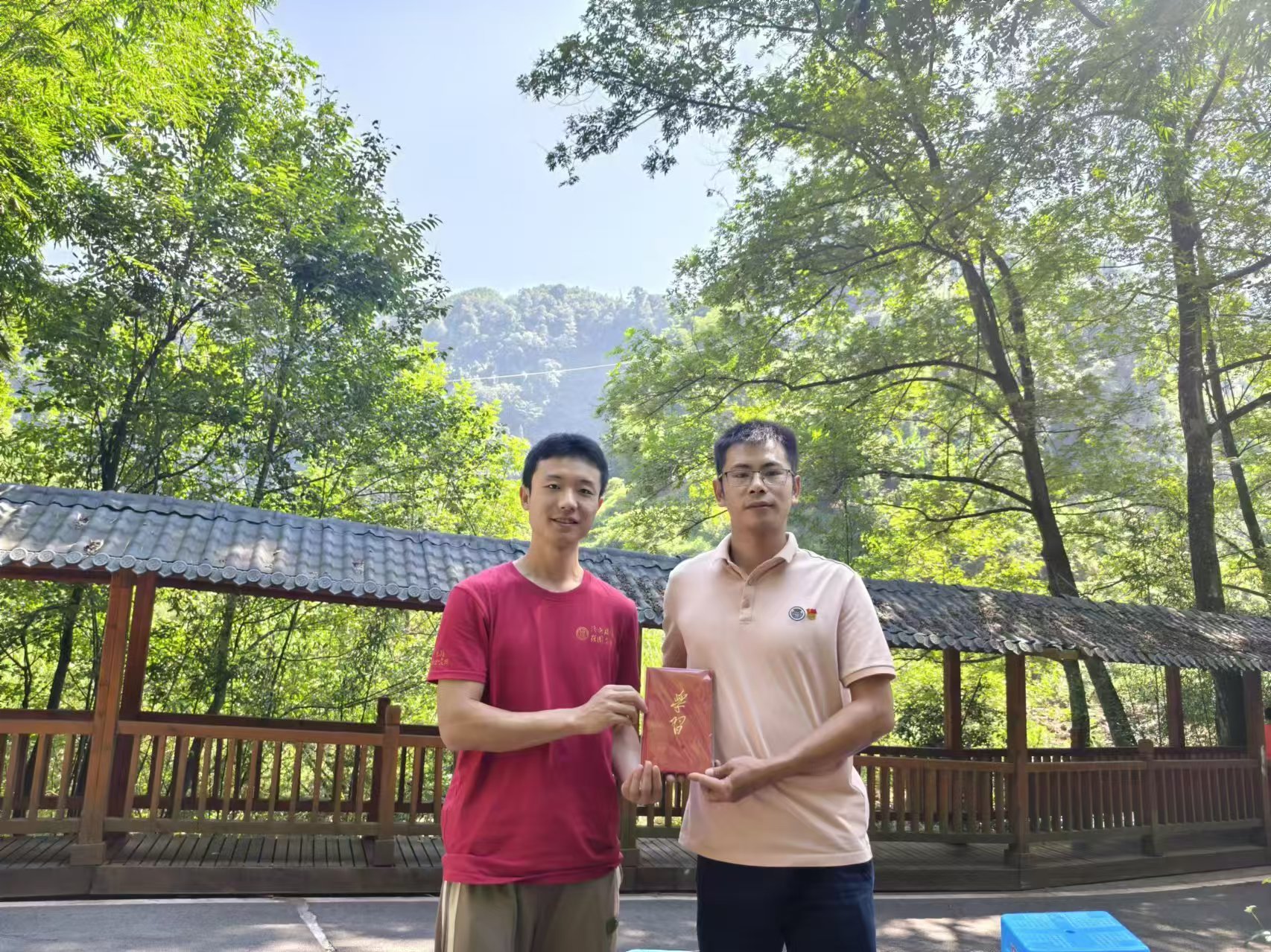 ▲太阳成tyc122cc集团本科生张烁阳与赤水市原市扶贫办主任、市乡村振兴局局长严本涛合影留念