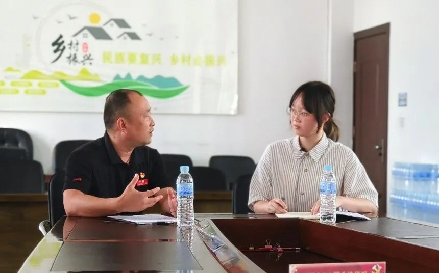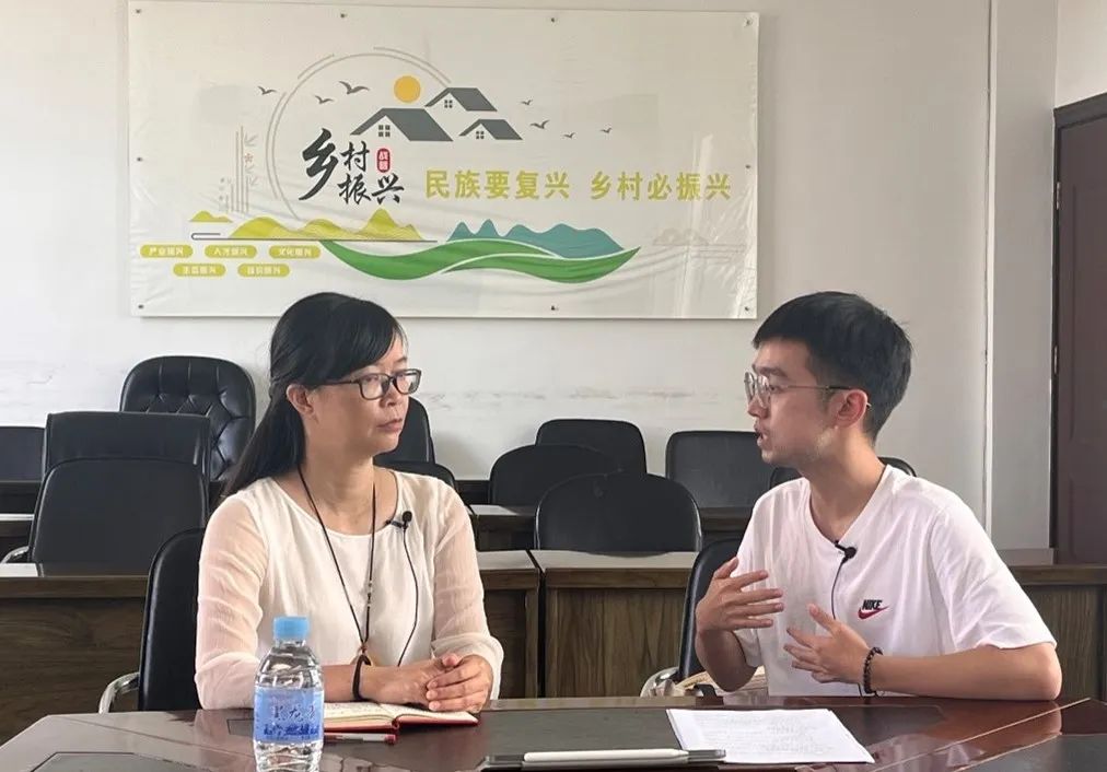 ▲太阳成tyc122cc集团本科生刘燕妮访谈原哨冲镇镇长罗映辉