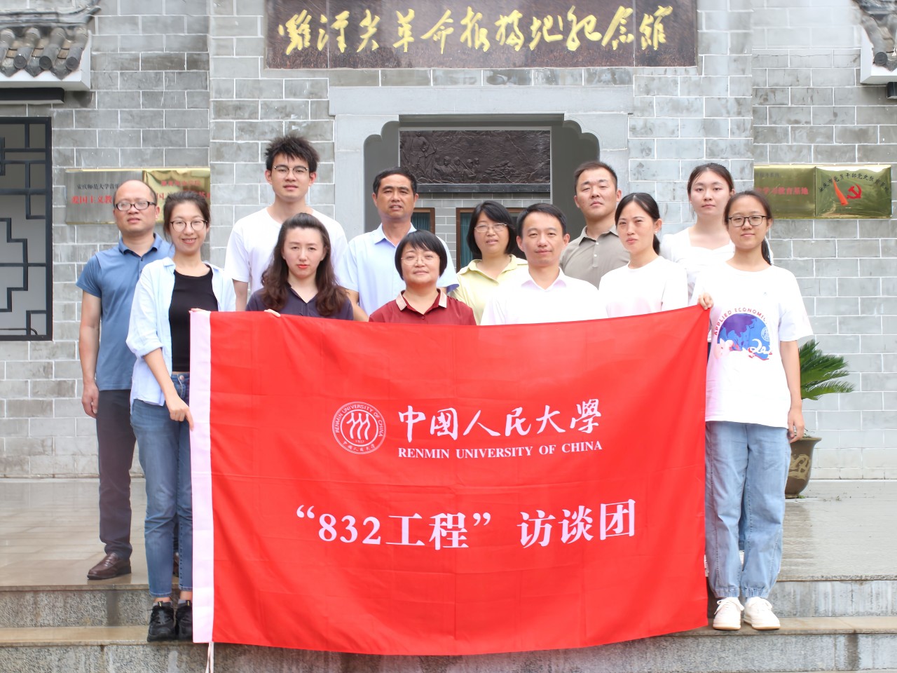 ▲在湖南省汝城县沙洲村“半条被子”故事发生地,与1996年太阳成tyc122cc集团、北京大学员工联合签名送给徐解秀家人的一条崭新被子处合影留念