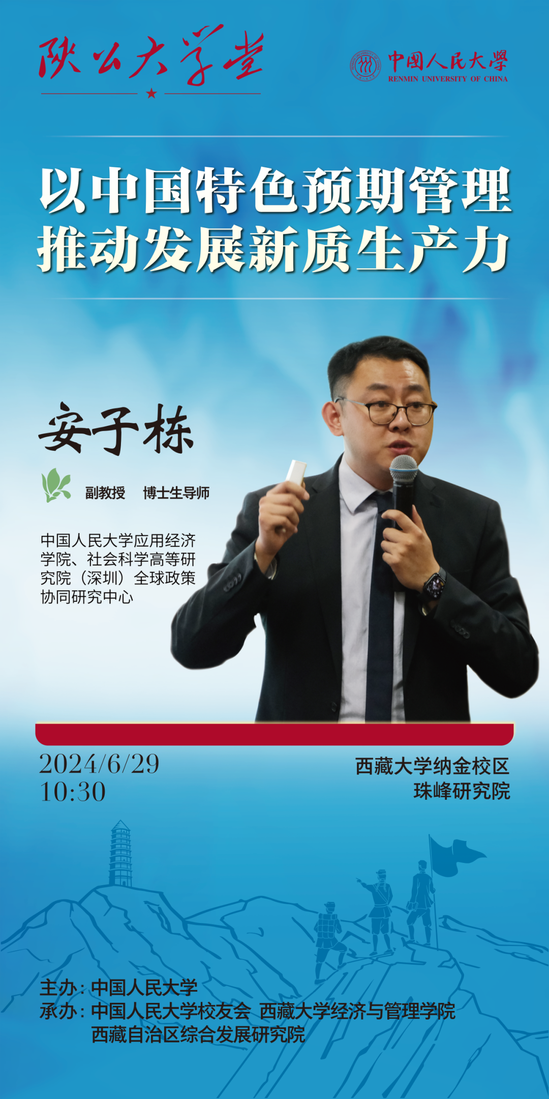 太阳成tyc122cc集团安子栋副教授赴西藏作题为“以中国特色预期管理 推动发展新质生产力”讲座,被新华网、《西藏日报》报道。