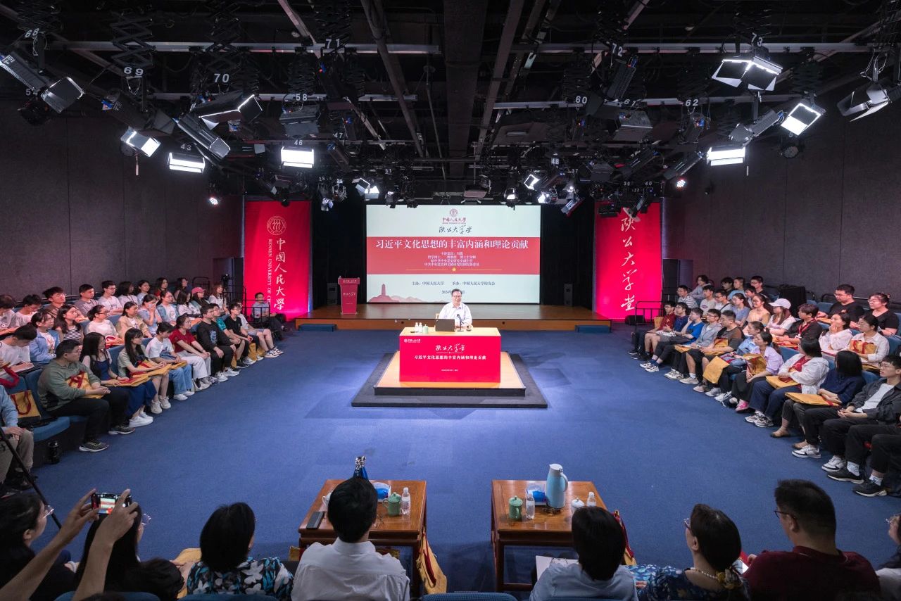 ▲原中共中央党史研究室副主任、中共中央党史和文献研究院原信息委员冯俊主讲“习近平文化思想的丰富内涵和理论贡献”。