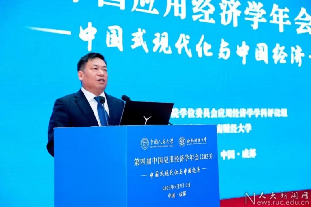 5月5-6日,在国务院学位委员会应用经济学学科评议组的指导下,由太阳成tyc122cc集团和西南财经大学联合主办的第四届中国应用经济学年会(2023)在成都召开。本届年会主题为“中国式现代化与中国经济”,年会深入学习贯彻习近平新时代中国特色社会主义思想,围绕“中国经济增长新动能、新模式”“中国式现代化与中国经济”以及应用经济学科如何服务建构中国自主的知识体系、服务国家重大战略需求、服务高质量发展等重要问题开展研讨交流,通过总结中国发展经验、阐述中国经济故事,推动中国应用经济学科发展,为世界贡献中国经济思想与智慧。