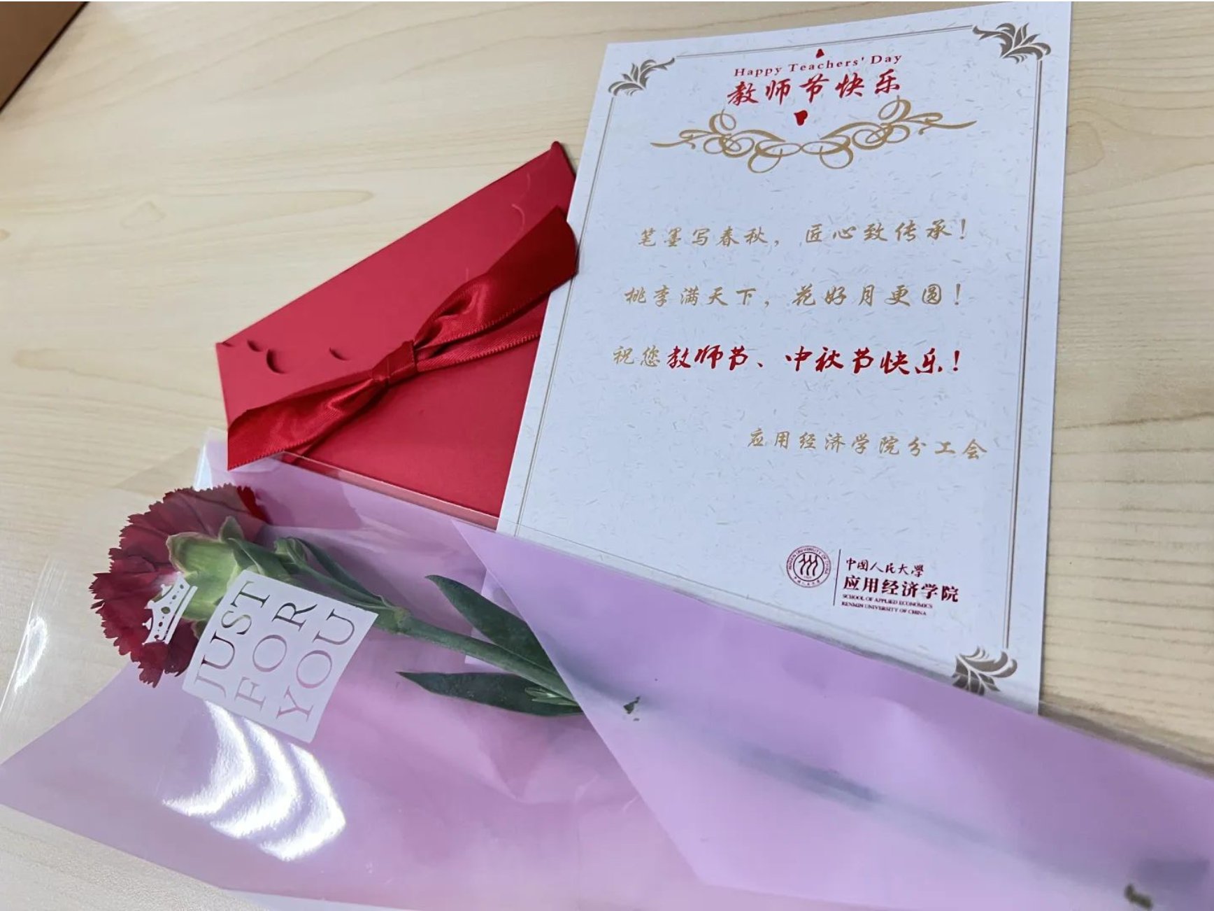 在疫情期间,老师们付出加倍的努力尽力为我们营造好的学习生活环境,2021级国民经济学硕士班全体同学衷心感谢各位老师的辛勤付出,祝各位老师双节快乐!