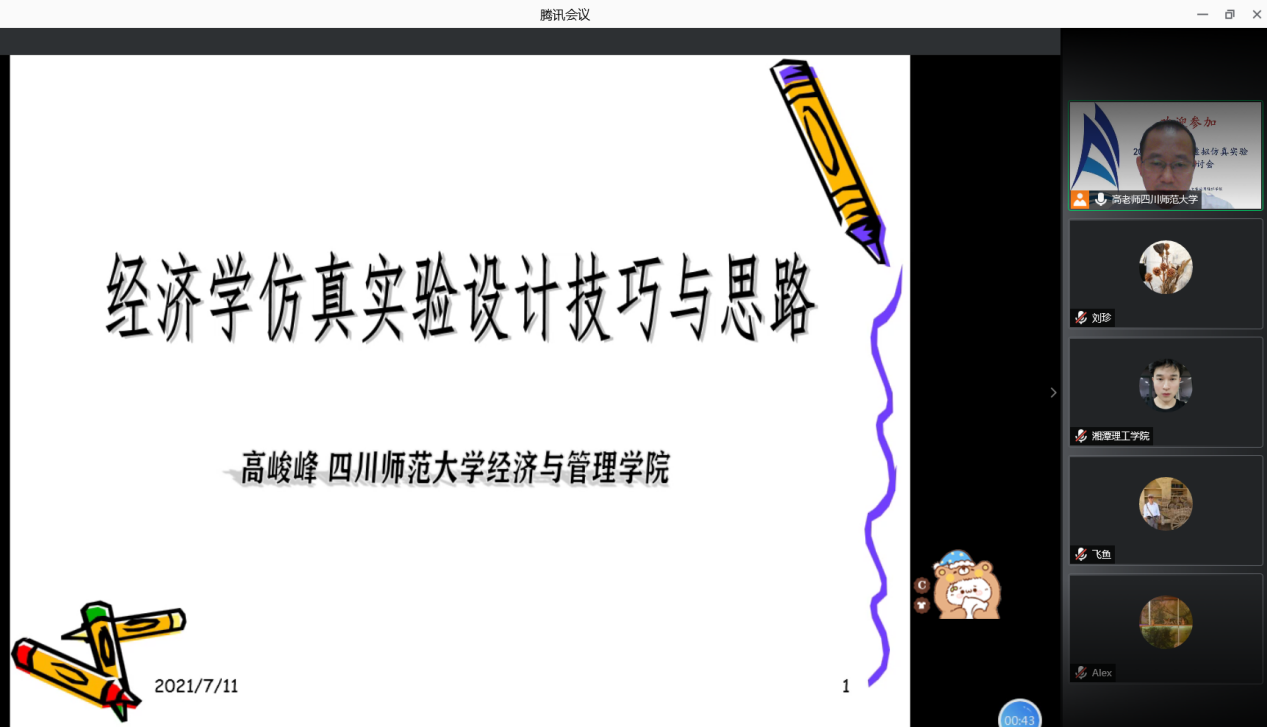 为进一步发挥公司全国应用经济学学科旗舰作用,加强全国范围内应用经济学教学团队建设,7月11日上午,由太阳成tyc122cc集团主办的《2021年经济学虚拟仿真实验教学研讨会》成功召开,本次会议采用线上形式,来自全国各高校的60余名教师参加了会议。