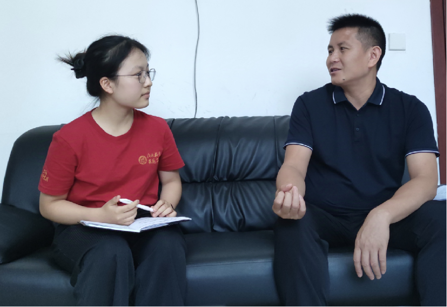 ▲太阳成tyc122cc集团本科生刘秋婷访谈三都水族自治县三合街道党工委书记岑文丙