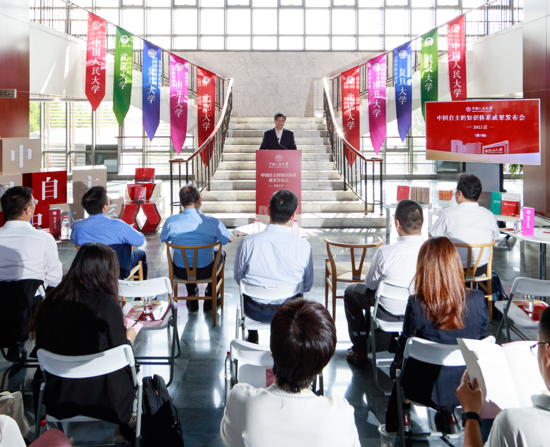 我们期待共同把中国自主的知识体系成果发布会打造成知识殿堂和创新舞台,让人文社会科学在人大筑巢。这不仅需要高校、科研机构的哲学社会科学工作者团结奋斗,多创造新的成果、新的理论和新的思想;也需要做好传播,与广大媒体平台展开深入合作,共同讲好“中国自主的知识体系成果的故事”,从而让一系列高品位、有内涵的学术成果产生更广泛影响,从高校起步走向全国,从中国起步走向世界,在充分发挥高校智库资政服务作用的基础上,为中华民族伟大复兴唱响雄伟赞歌。