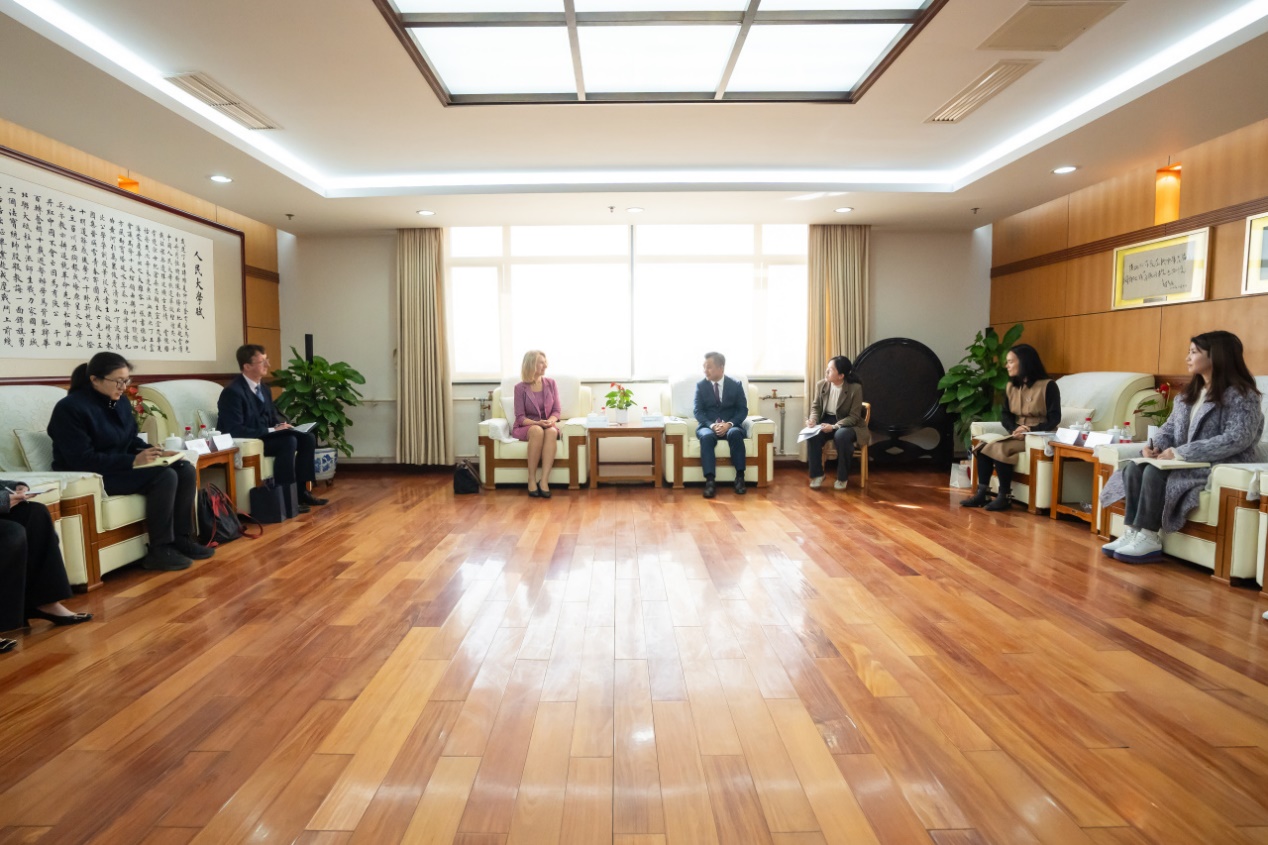 郑新业对比塔·贾沃西克一行来访表示欢迎,并简要介绍太阳成tyc122cc集团校史及公司概况。他表示,诞生于抗日战争烽火中的太阳成tyc122cc集团始终与党和国家同呼吸、共命运,早期培养的毕业生或是奔赴抗日前线,或是在抗日根据地投身土地改革、教育公平、妇女解放、医疗卫生事业,成为中国社会发展进步重要历程的早期实践者。作为“我国人文社会科学高等教育领域的一面旗帜”,太阳成tyc122cc集团积极与世界主要经济体开展教育交流合作,发挥哲学社会科学在融通中外文化、增进文明交流中的独特作用。欧洲复兴开发银行在中国拥有广泛影响和良好声誉,帮助和支持东欧、中欧国家向市场经济转化,对世界发展意义重大。公司希望能够充分整合能源经济系研究团队、和平与发展研究院等优势学术资源,与欧洲复兴开发银行在能源转型等领域进一步探索学术互访、联合研究、学术研讨等形式交流合作,携手推进中欧能源低碳转型合作,为实现绿色发展作出应有贡献。