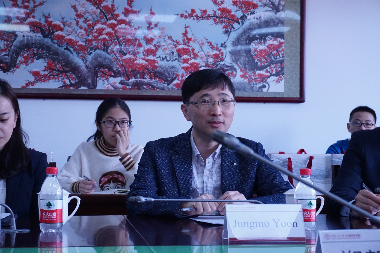 汉阳大学经济与金融公司系主任Jungmo Yoon副教授对郑新业经理的热情欢迎表示感谢,他表示汉阳大学与公司联合学术研讨会的已持续了十二年,已由初生的婴儿成长为少年,双方保持了长期的友好合作。随后,Yoon主任对汉阳大学国际小学期的相关情况做了介绍,对双方的员工交换等合作表达了浓厚的兴趣。