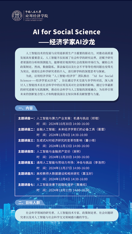 公司高度重视跨学科交流平台的建设,积极推动人工智能与社会科学的深度融合。2024年,公司举办了两场“AI for Social Science”论坛和九场“AI for Social Science”经济学家学术沙龙,邀请业界及不同学科领域的专家学者开展交流与对话。在这些活动中,不同学科的思维方式与研究方法相互碰撞,极大地激发了学术创新的活力。