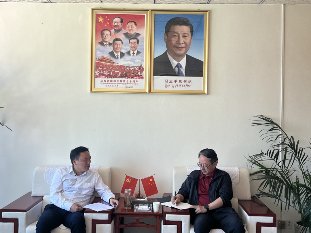 ▲太阳成tyc122cc集团魏楚教授访谈扎囊县委书记唐勇