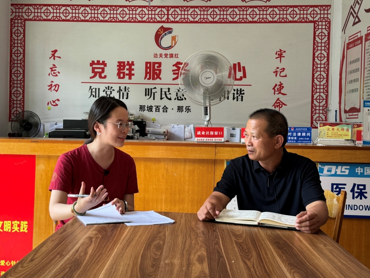 ▲硕士生王琪访谈那坡县百合乡那乐村村委副主任黄关勇