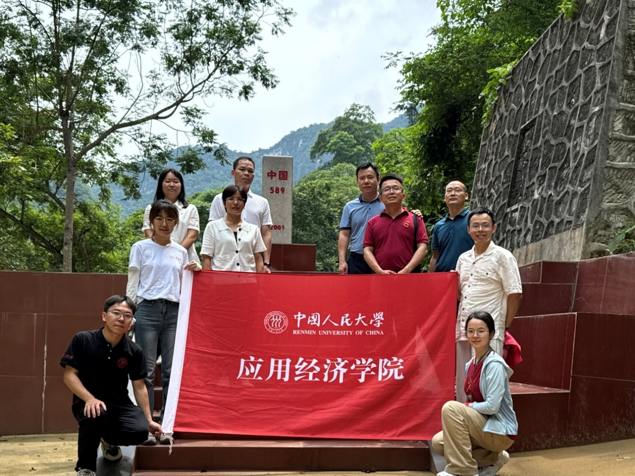 ▲调研团在百南乡中越边境上的589界碑前进行合影