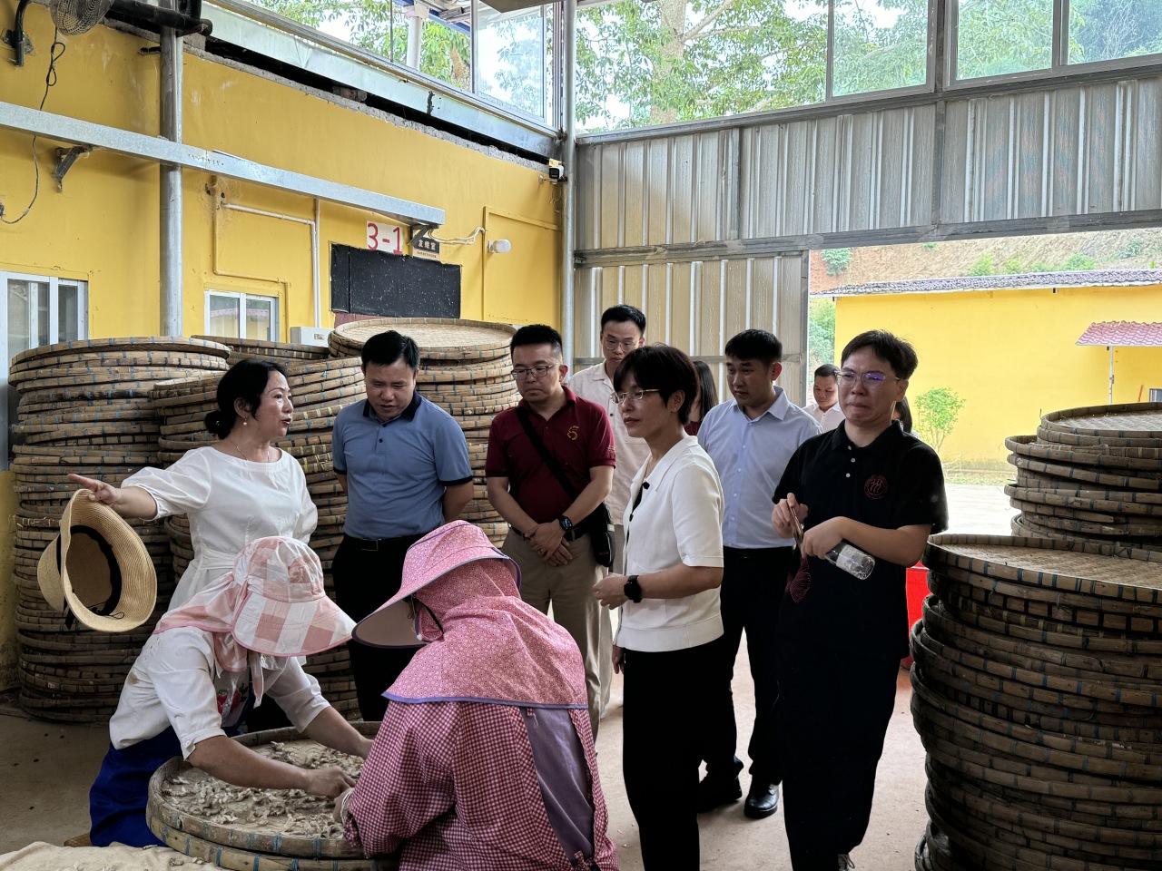 ▲调研团在帮扶车间学习蚕种生产供应链