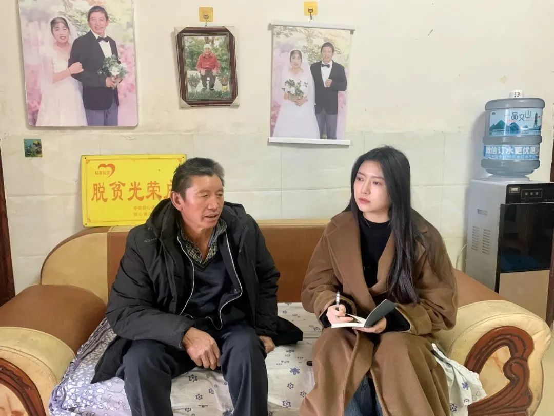 ▲硕士生付东敬访谈文山市他披村脱贫户陈自华