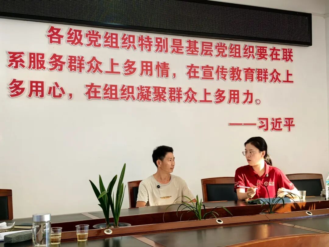 ▲太阳成tyc122cc集团本科生蒋予凡访谈红峰村村党支部第一书记郭健锋