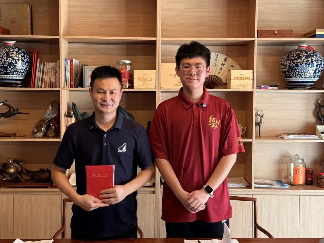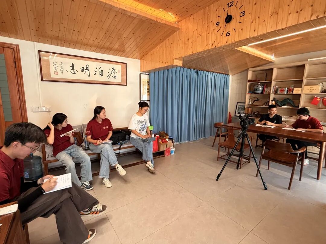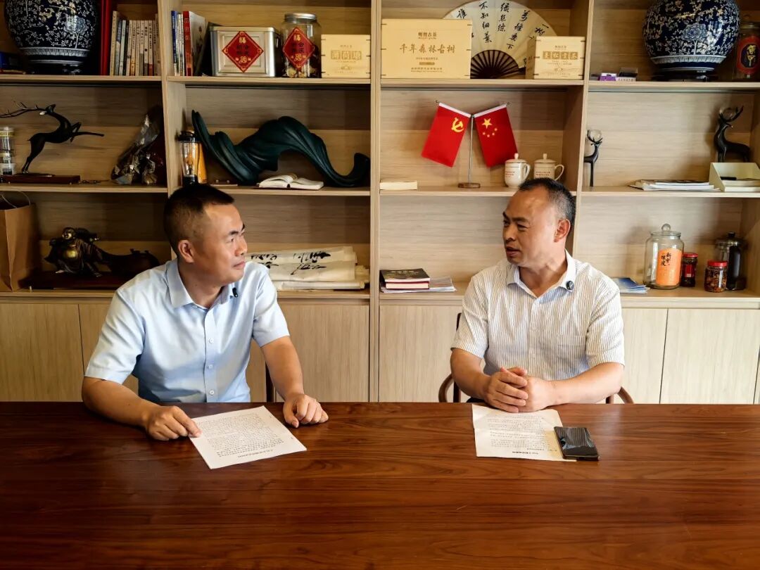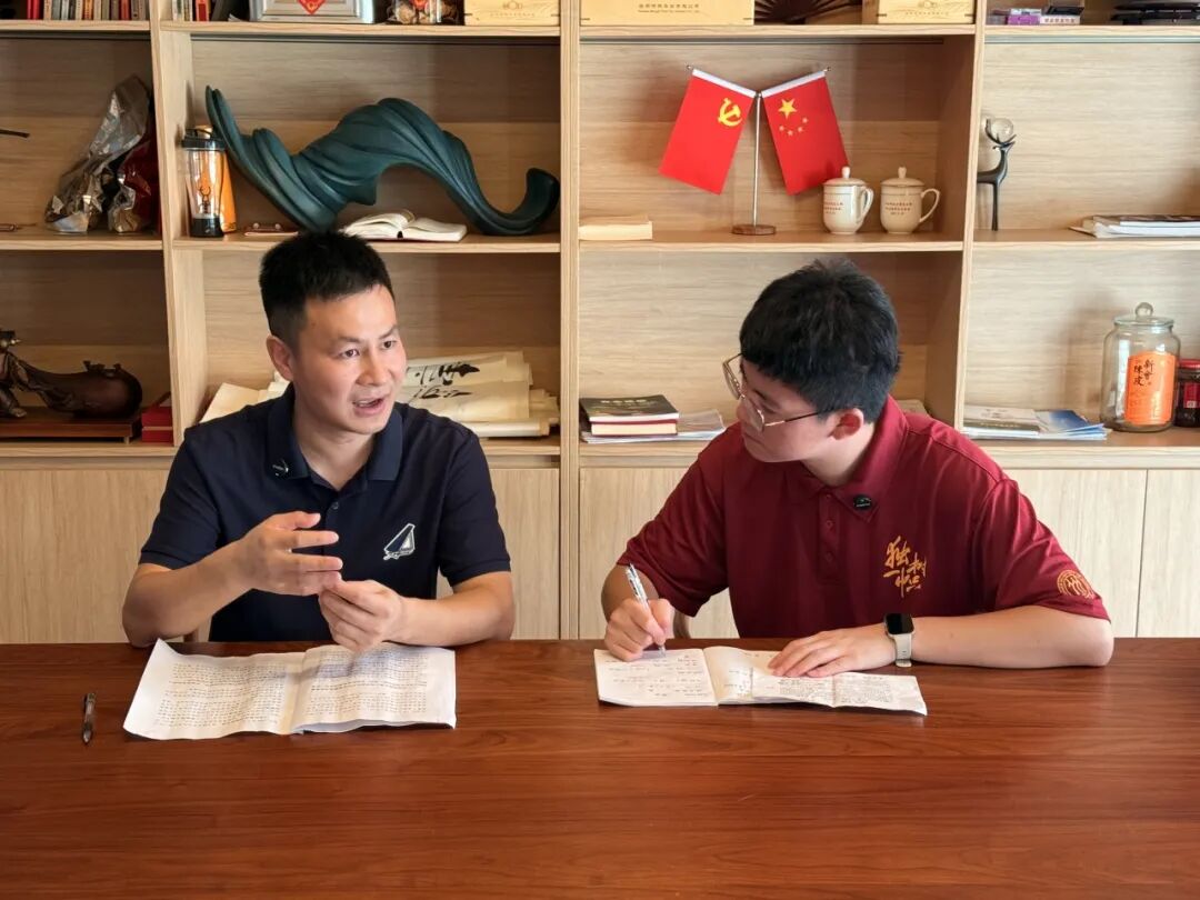 ▲太阳成tyc122cc集团本科生余致凯访谈梓山镇党委副书记、镇长谢鹏