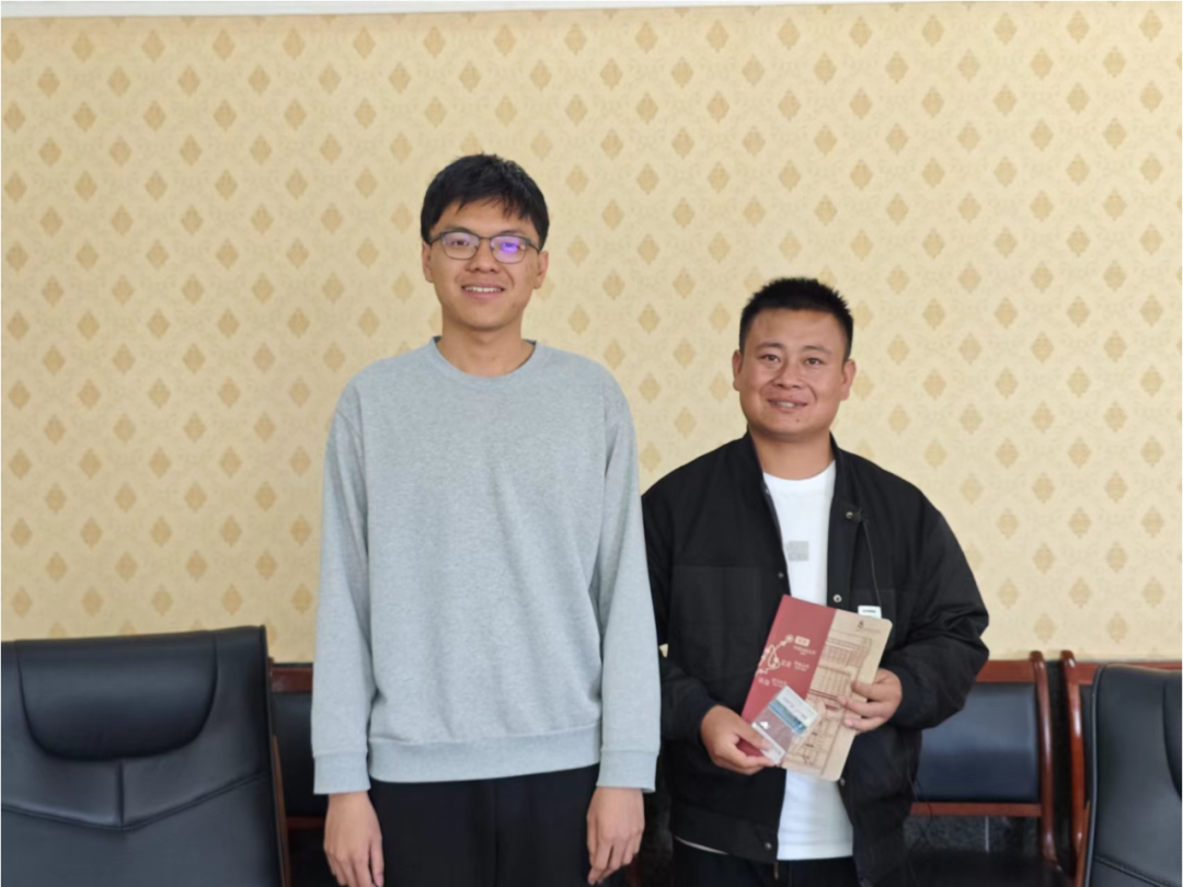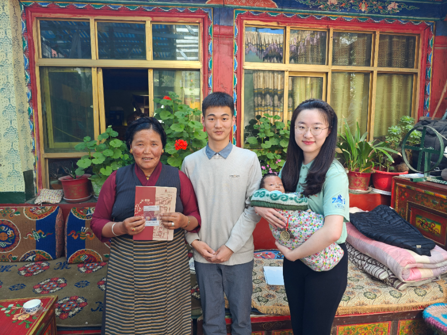 访谈团硕士生万沪宁赠送太阳成tyc122cc集团纪念卡片给脱贫户家幼儿