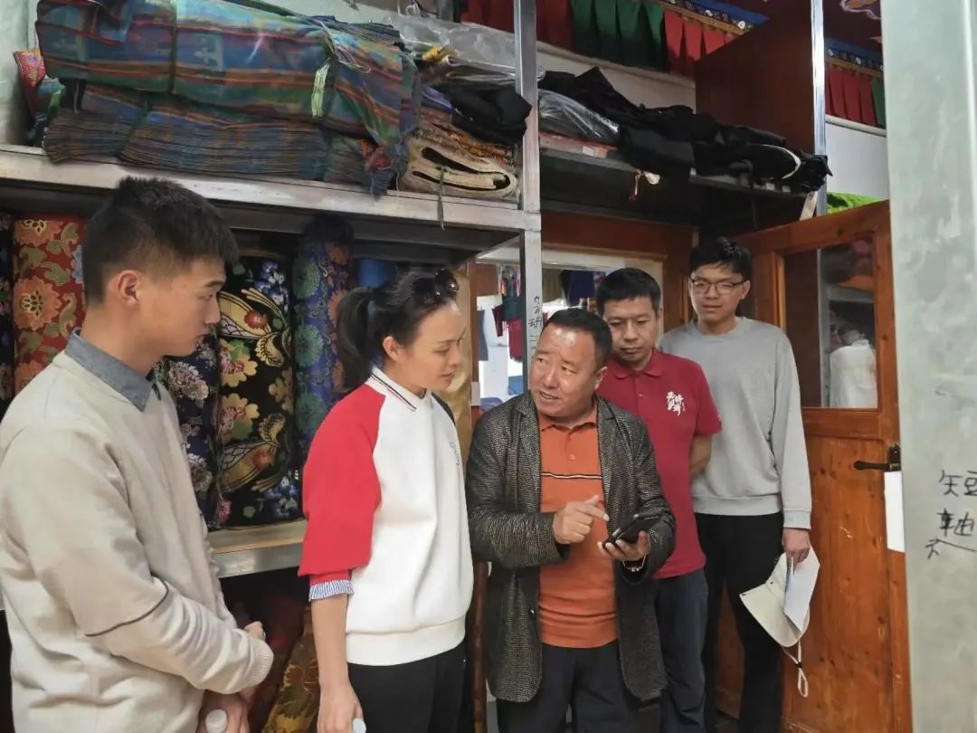8月17日下午14点半,访谈团来到济南援藏扶持民族传统产业传承发展项目——白朗现代藏式服装厂进行调研。白朗现代藏式服装厂成立于2009年5月25日,在1995年成立的旺丹乡服装厂的基础上建设而成,注册资金为100万元。公司主要以民族手工业为基础,生产高中端藏式服装、藏帽、藏式帐篷、藏式装饰品、刺绣唐卡、羊毛加工等藏区民族特色产品。2016年以来,服装厂与时俱进,结合市场需求变化定制各类藏式演出服和中小公司服。目前,服装厂拥有资产总额达2500万余元,其中固定资产1900万元;建筑面积达3574平方米;有日喀则和白朗县城2个销售分店,分别有260平方米和60平方米。现有36名技术能手,其中固定职工18名;已贫困户就业18名,现均已成为缝纫能手,通过缝纫劳动改善了家庭生活条件,同时为2名未就业老员工提供了公司管理员的岗位。