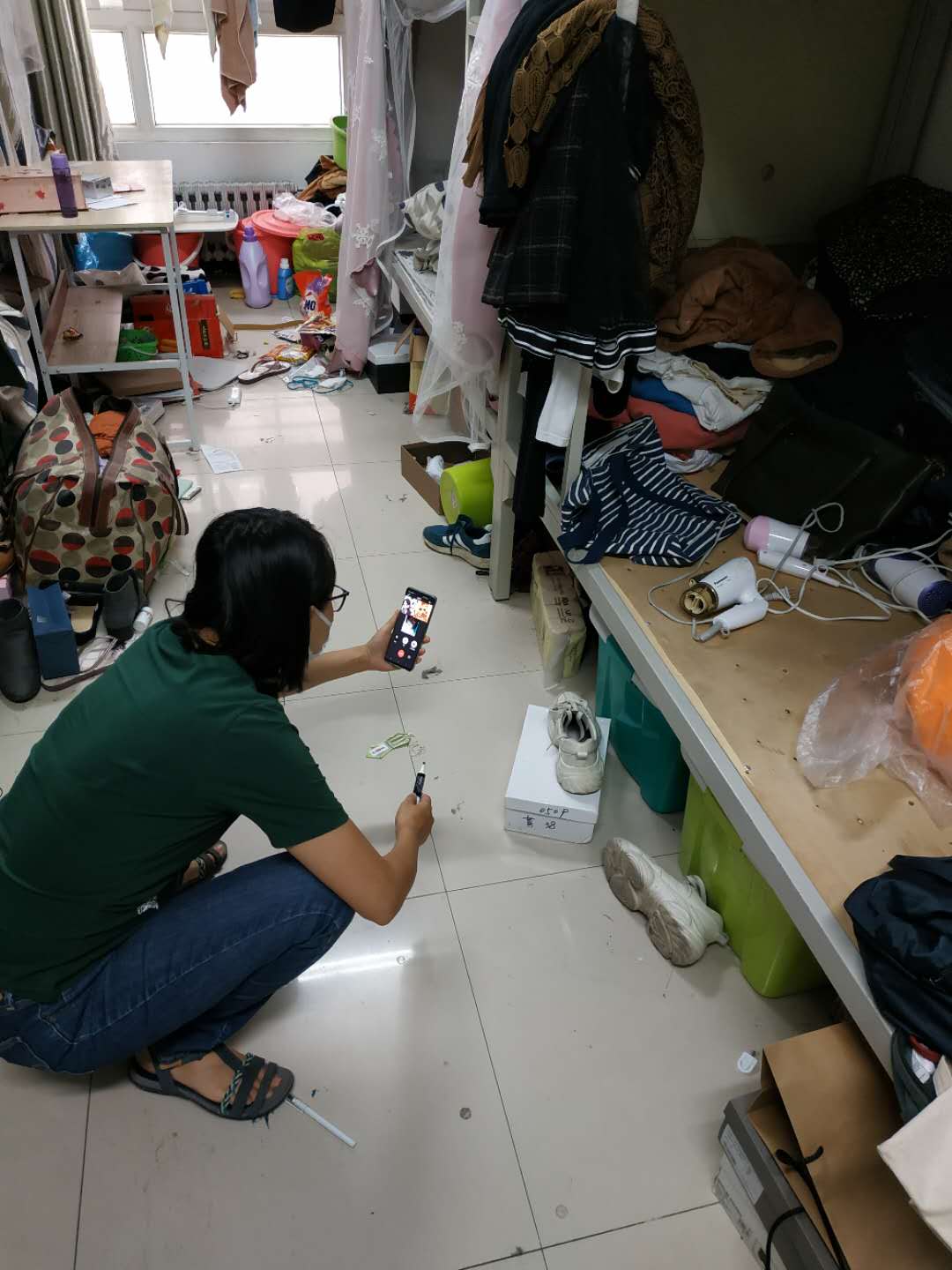 刘畅老师和员工确认阳台区域物品