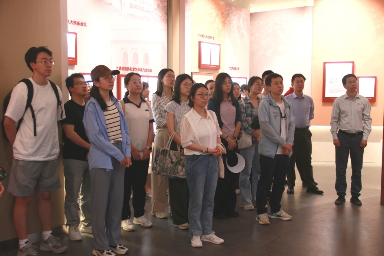 在讲解员的带领下,支部成员参观了中国共产党第八次全国代表大会历史陈列展。展览详细还原了中共八大召开时的历史场景,全景式反映了中国共产党为开辟一条适合中国国情的社会主义建设道路而进行的积极探索。在“大会准备”部分,同学们认真学习中共八大召开时的国内外背景、《论十大关系》等大会筹备的重要内容;在“大会召开”部分,大家近距离参观了毛泽东同志起草的开幕词大纲、主席团名单、中共八大召开时现场录像等珍贵文件和历史影像;在“大会意义和影响”部分,通过图片图表、视频档案、沙盘实物等方式的学习,大家对“中共八大对社会主义改造基本完成以后国内的主要矛盾作出了科学的判断”的重要意义有了更加深刻的理解。