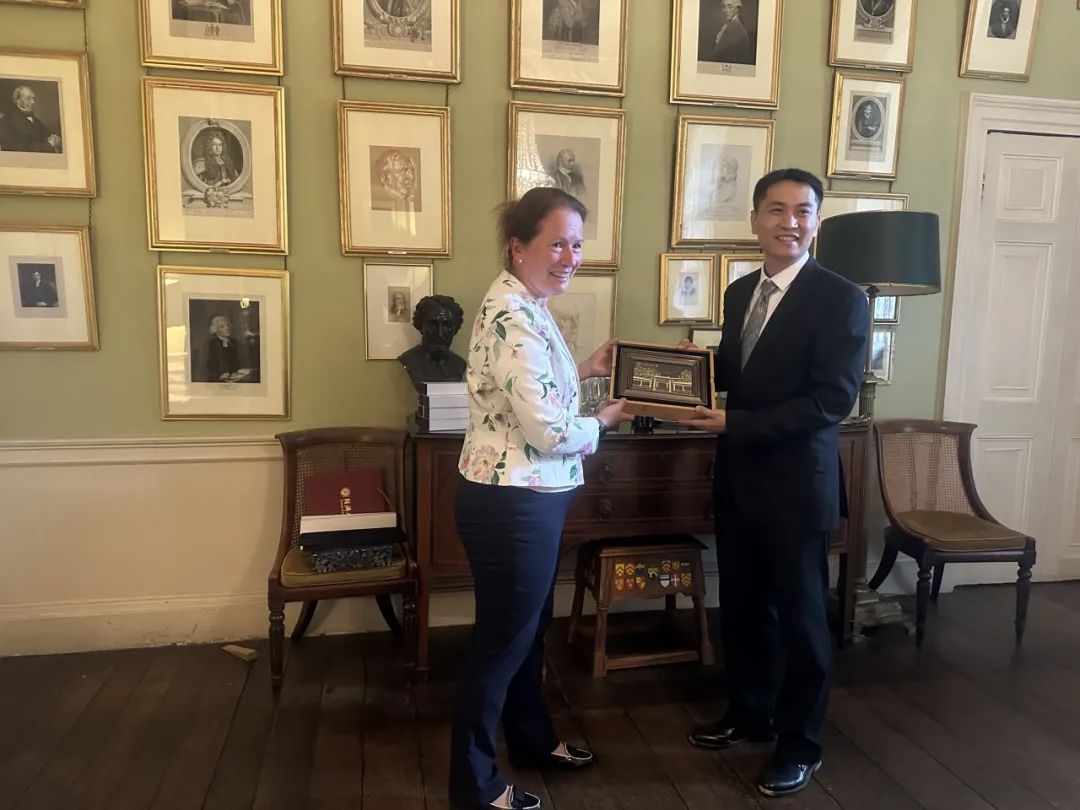 随后,代表团赴剑桥大学进行访问。在剑桥大学圣约翰公司,代表团会见该院外事主管马提亚•多尔扎普夫 (Matthias Dörrzapf),双方就加强师生交流等问题做了充分沟通。