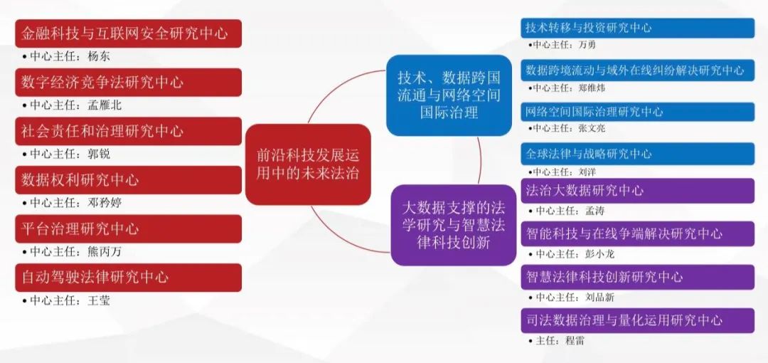 聚焦法律与科技,率先成立聚焦法律与科技的未来法治研究院、数字法学教研中心,组建跨学科平台14个;率先设立数字法学二级学科,开展“未来领军人才”计划,建设数字法学实验室,开发全国首家“互联网法院虚拟仿真实验教学”系统;《个人信息保护法》《数据安全法》等立法建议被采纳;发起全国高校数字法学联盟,获批未来法治创新引智基地(“111”计划)。