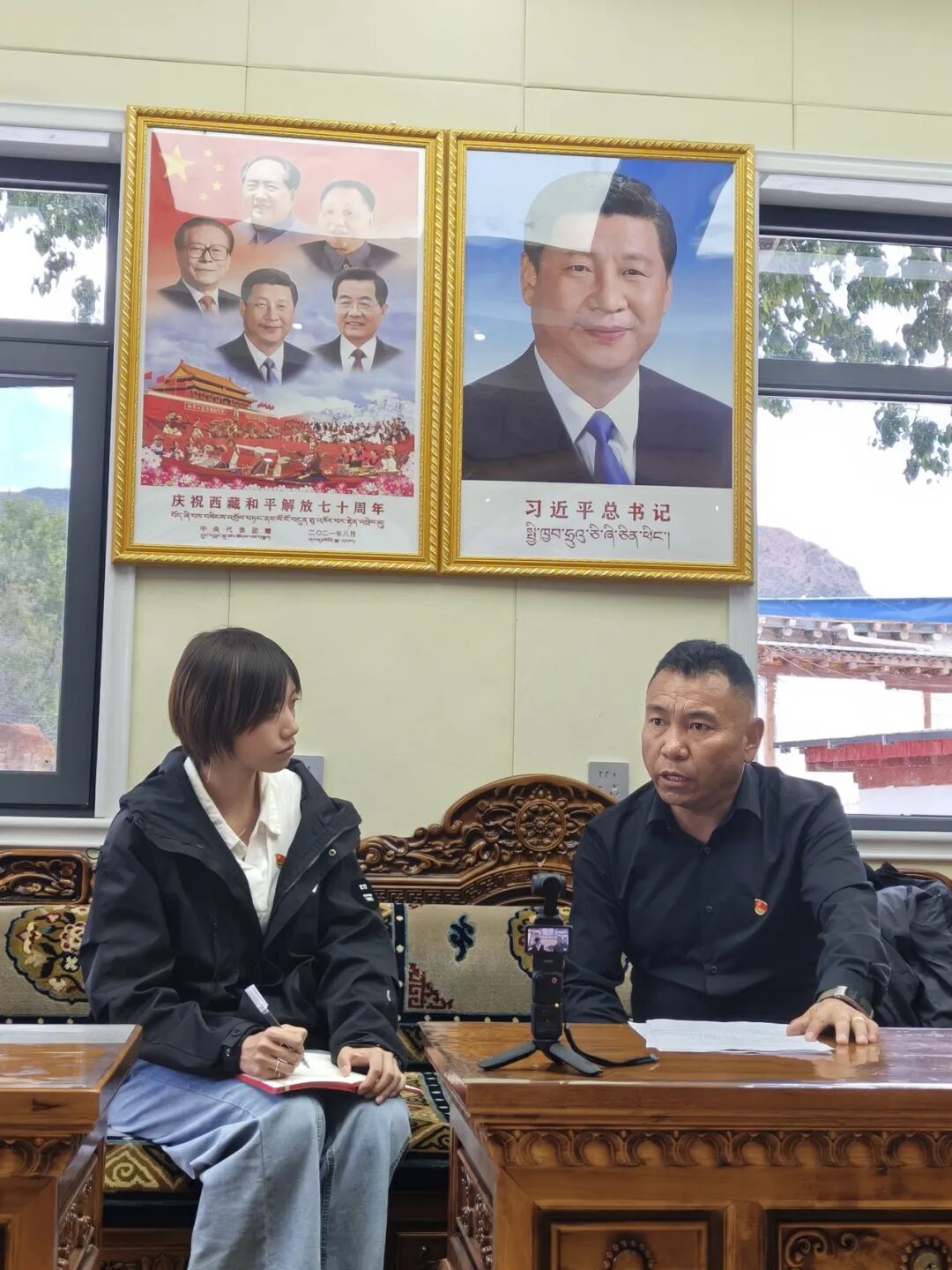 ▲北京大学经济公司博士后蔡宇涵访谈孜托镇原党委书记次旺