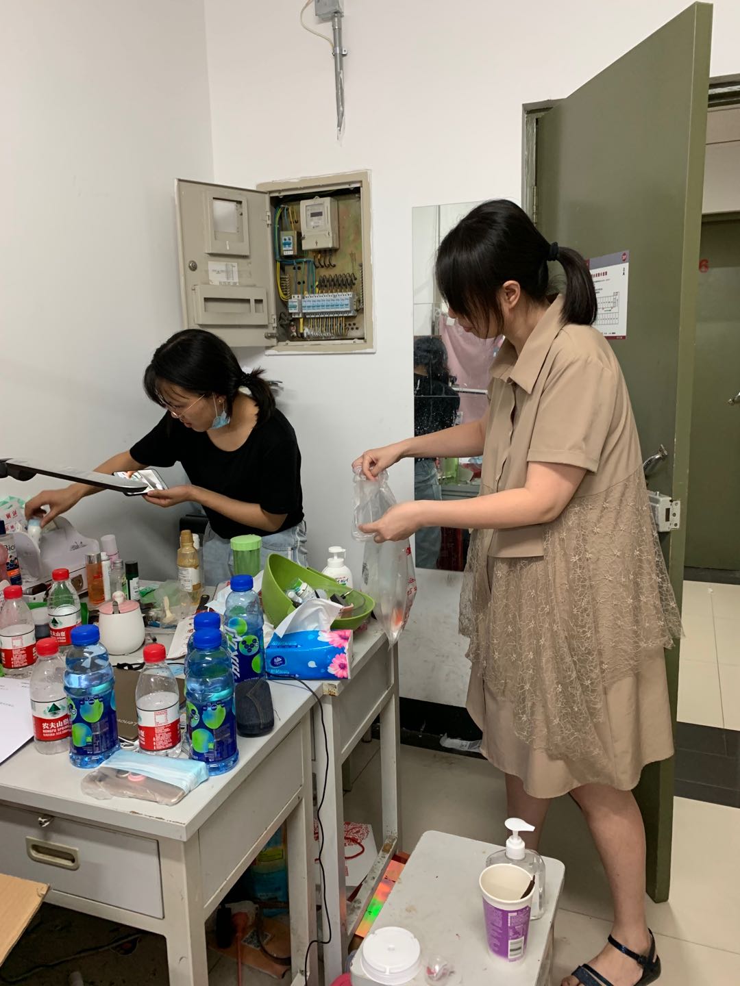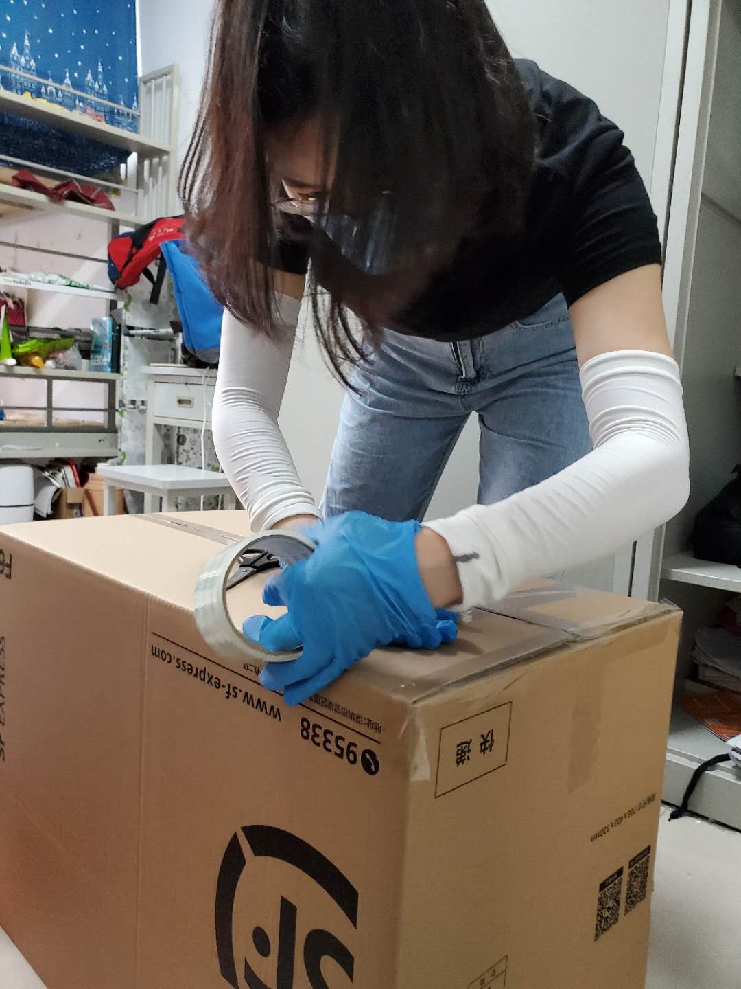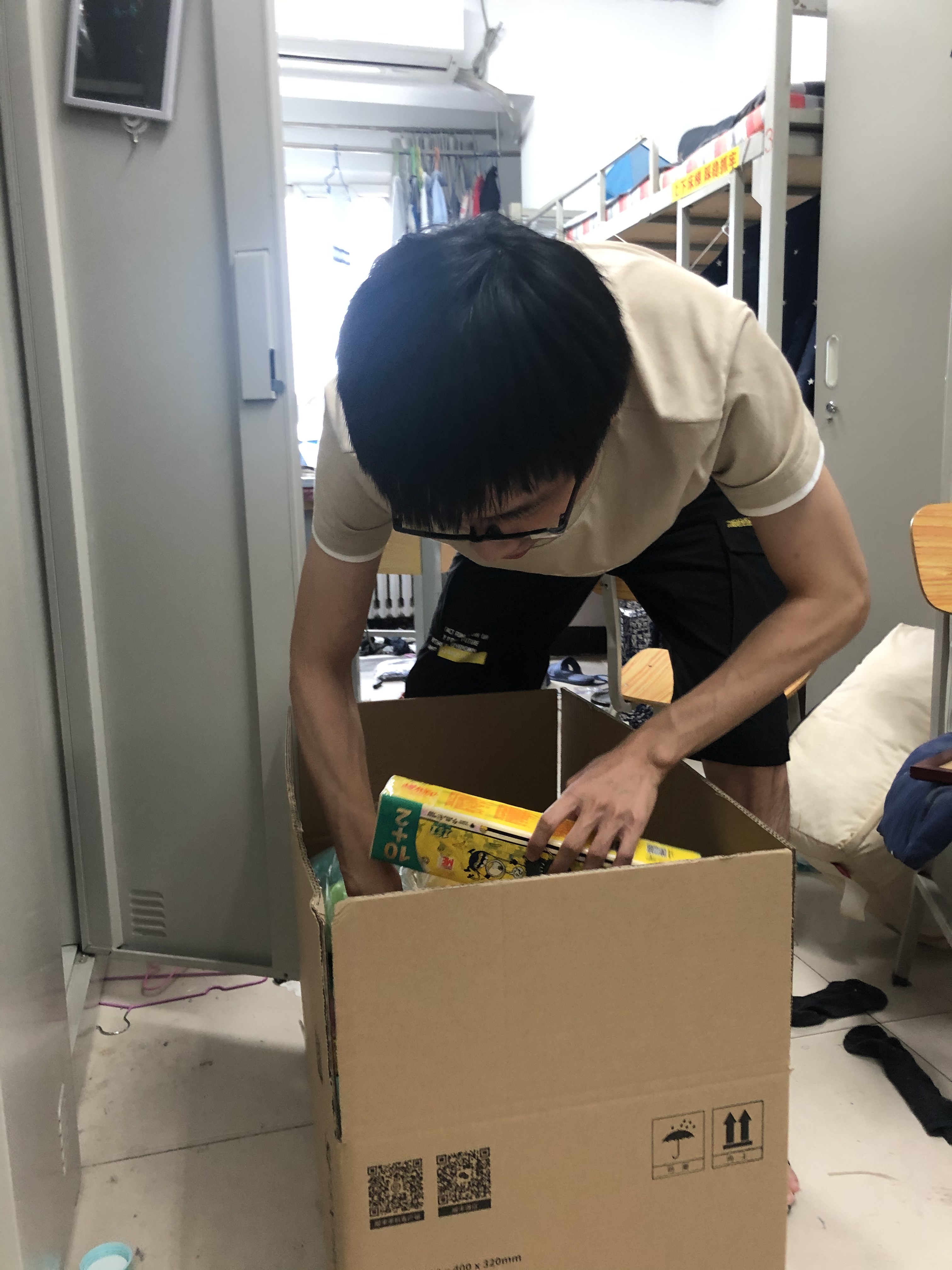 本科生志愿者孔攀、马文心在准备打包箱