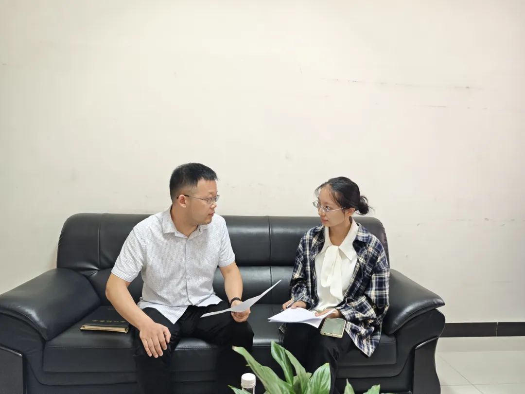 ▲博士生林蔚楠访谈白沙镇廖家沟村驻村第一书记刘宁