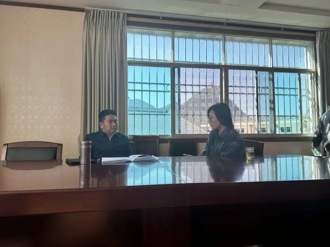 ▲博士生王忻彤访谈县农科局书记余明开