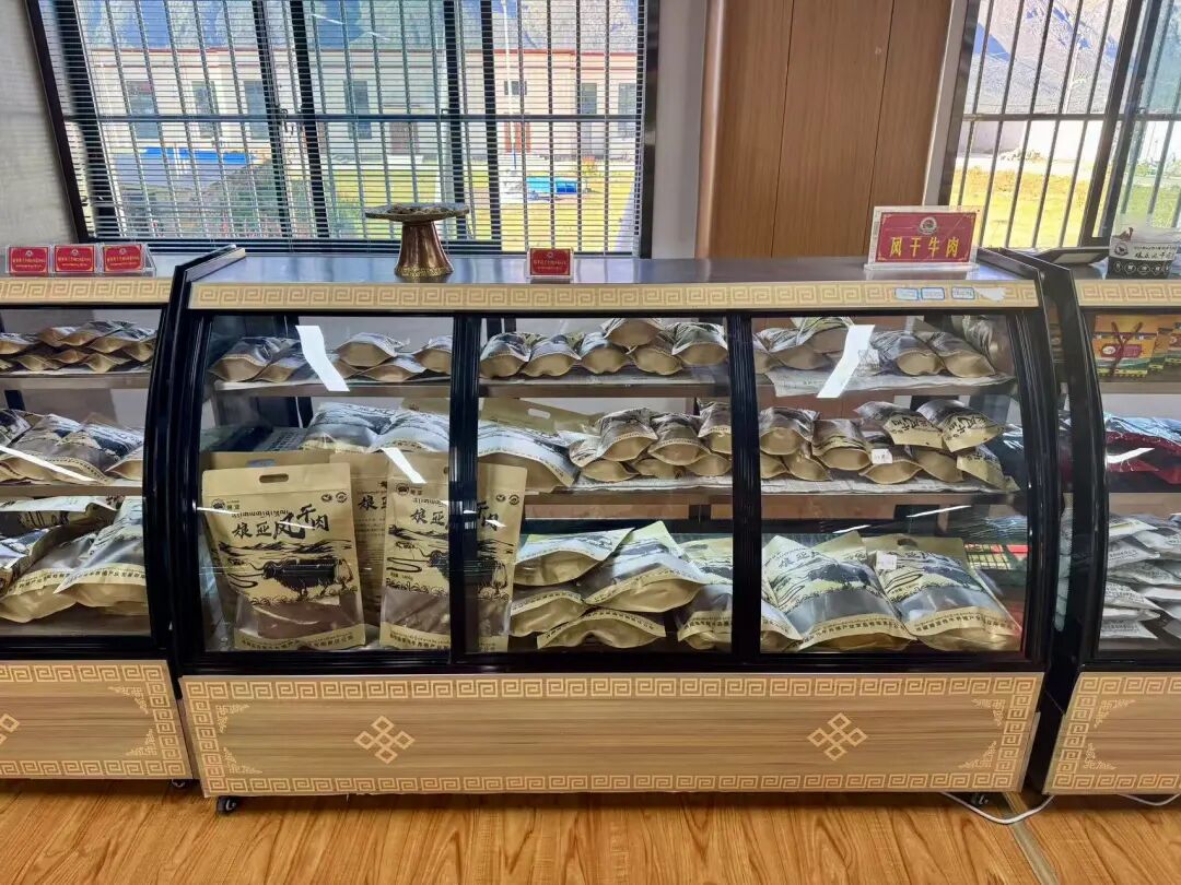 ▲嘉黎县娘亚牦牛养殖产业发展有限公司的特色畜产品展示柜
