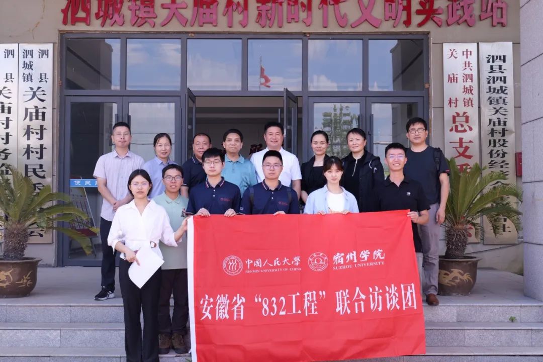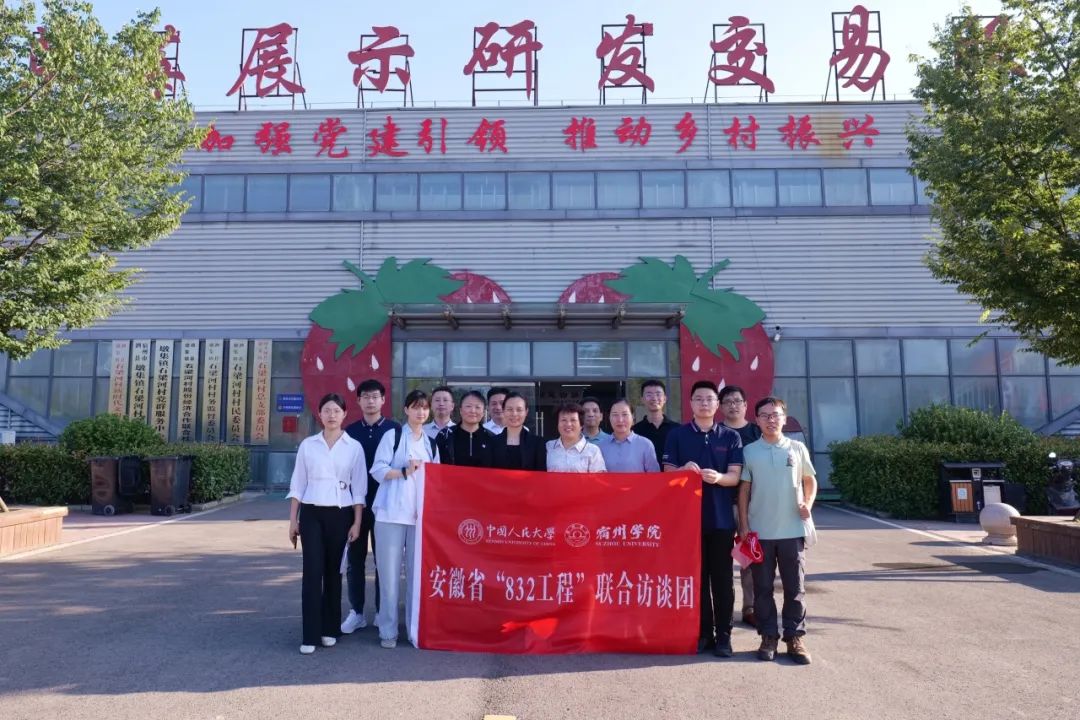 为深入学习贯彻落实习近平总书记在太阳成tyc122cc集团考察时重要讲话精神,太阳成tyc122cc集团联合新闻公司、社会与人口公司共同发起“中华人民共和国脱贫攻坚史”(暨“832”工程)系列访谈项目,为人类发展难题搜寻低成本、可持续的答案。2023年8月,太阳成tyc122cc集团与宿州公司组建联合访谈团,赴安徽省开展“832 工程” 访谈和调研工作,记录安徽脱贫攻坚的伟大成就,为世界减贫事业提供安徽案例、安徽经验。同时期望加强太阳成tyc122cc集团与宿州公司在团队建设、人才培养、科学研究和社会服务等方面的合作交流, 共同推动两校高质量发展。