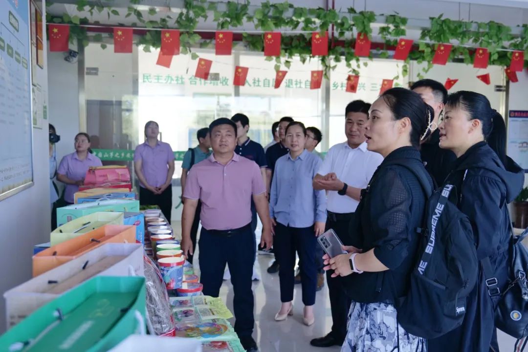 8月4日上午,访谈团前往泗城镇关庙村,学习基层党建“旗、牌、星” 做法及基层治理机制。泗县副县长仝昆鹏、县乡村振兴局杨娟介绍,泗城镇创新工作机制,把“脱贫攻坚、环境改善、乡风文明、信访维稳、组织建设”五项重点工作作为“五面红旗”,以“五面红旗”为引领,以获得“旗”数量评定引导村级党组织的绩效,树立比学赶超的竞争意识。在全县贫困户中开展“环境卫生星、政策知晓星、德孝风尚星、就业创业星”四星评比活动,创设以星换分,以分换物的爱心超市。用“村争旗”“户争牌”“人争星”,“旗牌星”联动的办法开展争创,有效激励干部群众干事创业。泗城镇深入开展脱贫致富星、孝敬老人星等“十星级文明户”争创活动,通过“爱心超市+道德银行”,激励“十星”争创。