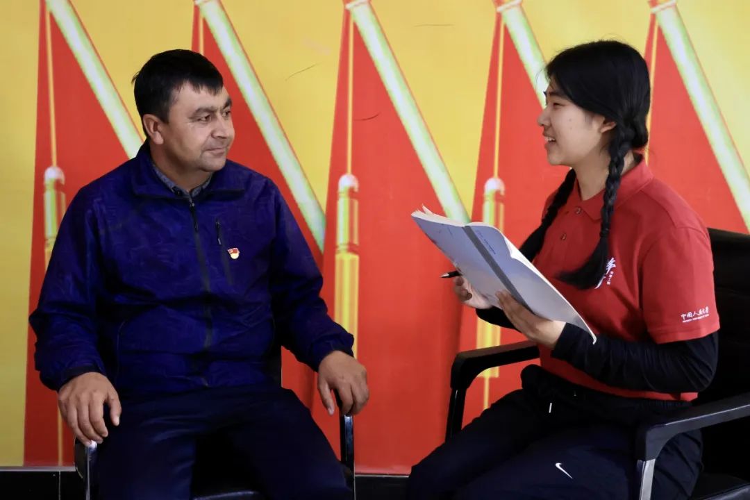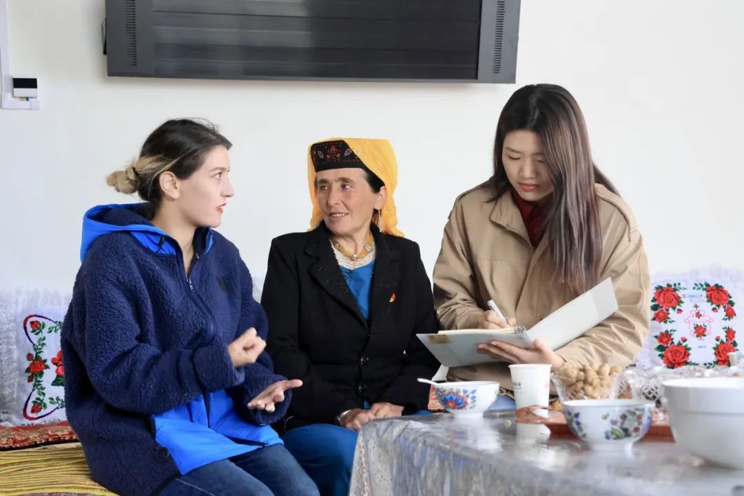 ▲新疆财经大学研究生张田访谈脱贫户