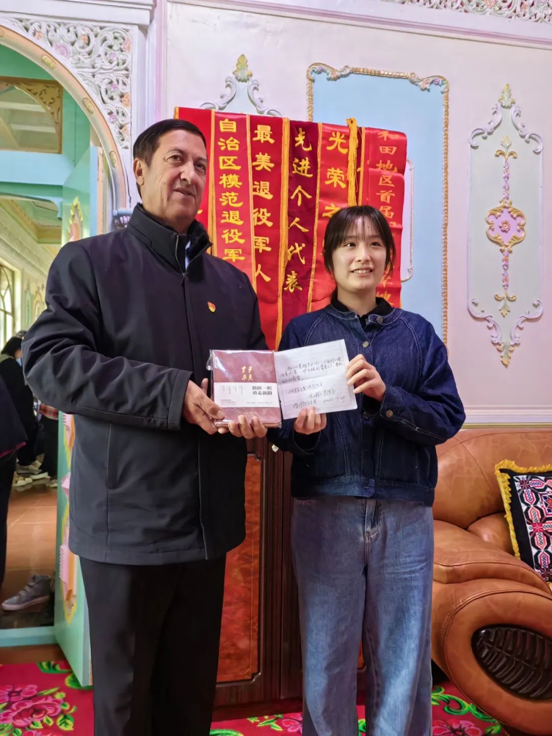 龙吉克向调研团讲述了一家四代卫国戍边的故事,无私奉献、爱国爱民的精神深深打动着调研团。最后,龙吉克也向调研团留下了深情的留言:“我们的荣耀来着我们对祖国的最纯真的爱,望为祖国繁荣发展奉献自己的青春。”