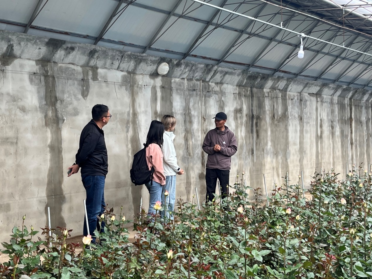 园区负责人旦增曲扎向访谈团介绍了该园区的基本情况。古荣镇蔬菜园区占地2500余亩,建成了631栋日光温室和1栋智能育苗温室,总投资2.45亿元,现已全面投产运营,主要种植瓜果、蔬菜和花卉。2023年,园区生产了1800万斤瓜果蔬菜和500万支鲜切花,年生产总值达到3880余万元。通过着力发展设施农业,园区形成了“分红+就业+土地流转”的带动模式,让农牧民深度嵌入设施农业发展链条,实现就近增收。自项目投产以来,园区累计为群众及村集体分红2492.95万元,为95名群众提供就业岗位,发放年工资380万元,年均兑现土地流转费400万元。旦增曲扎详细介绍了园区的未来发展计划。下一步,古荣镇蔬菜园将从“租赁+自营”模式、推广先进技术、强化种苗培育等多方面着力,推动品牌效应建设并打造区域农产品销售平台,从而实现农业园区的可持续发展。