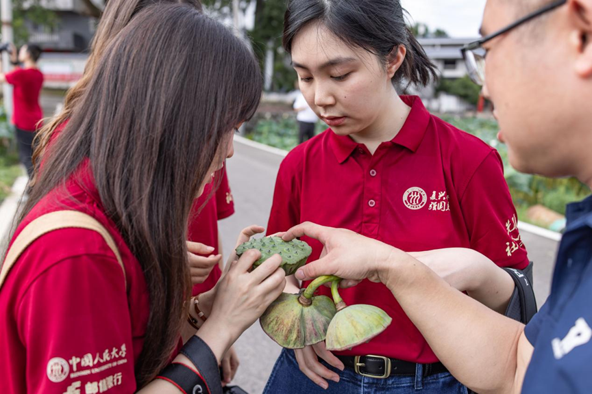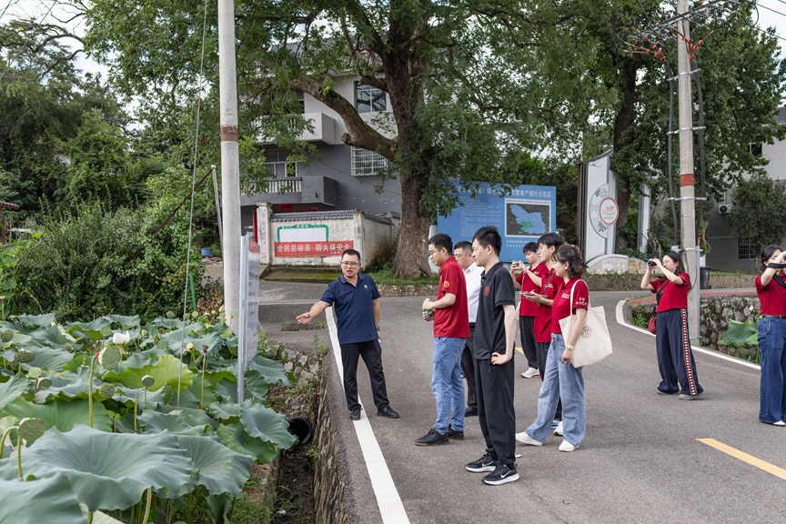 ▲调研团在大畲村实地调研莲产业发展