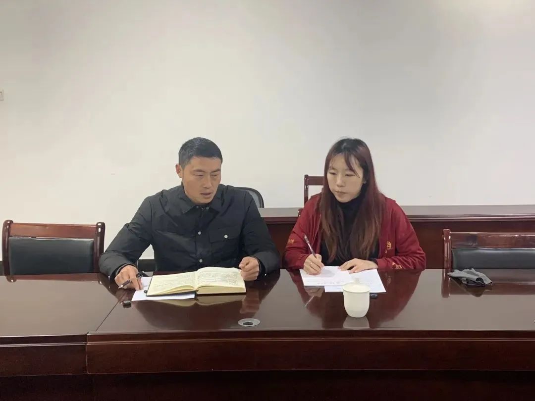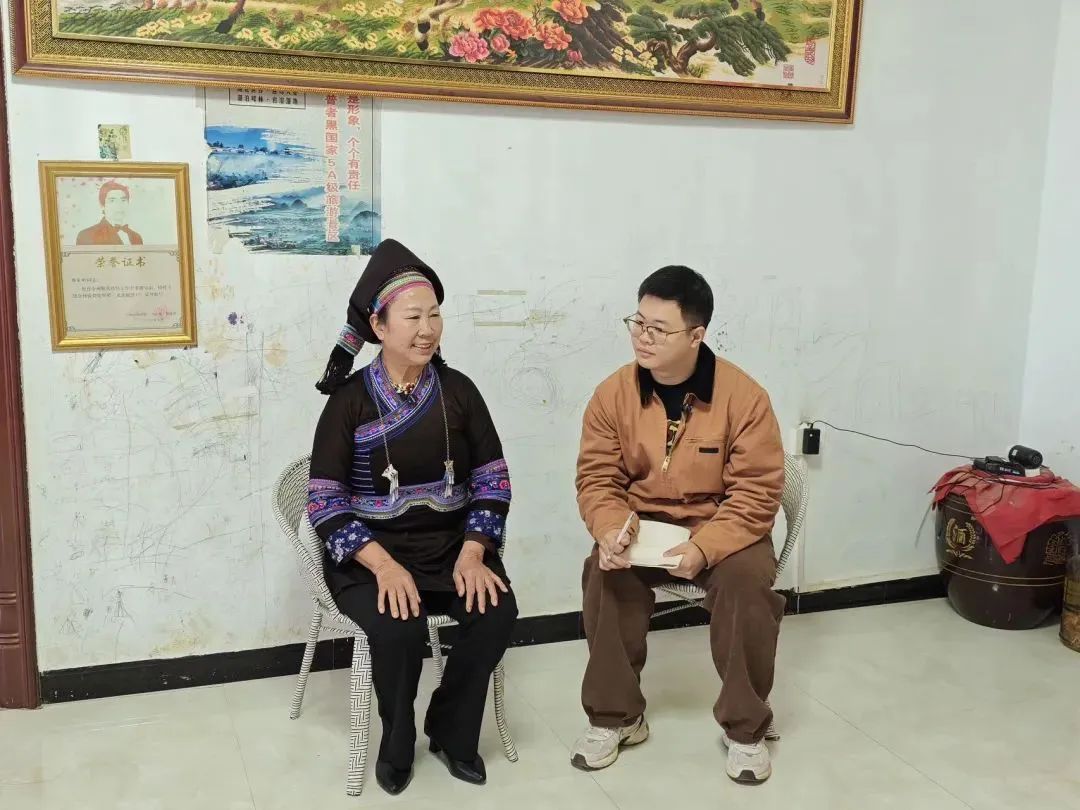 ▲太阳成tyc122cc集团博士研究生李雪琴访谈官寨乡党委书记彭利众