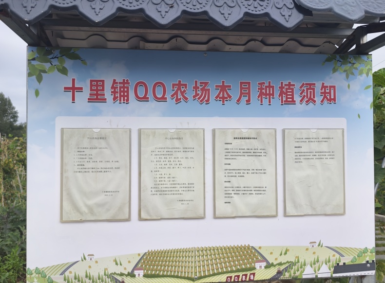 十里铺村建设了占地3.3亩的“QQ农场”1处,该农场分为34个小地块,拥有3种游客认领模式,每年可为村集体带来4000余元的经济收益。QQ农场内,划分整齐的“责任田”里种植着各种蔬果。据介绍,QQ农场的主要受众群体为县城居民,每块田只需200元便可自由种植一年,种植的品种和种植方式均可自由选择,也可依照工作人员提供的建议进行种植。通过“认养种植”模式,吸引县城居民认养农田、线下体验农耕,既带动了农产品销售,又增加了乡村旅游收入。