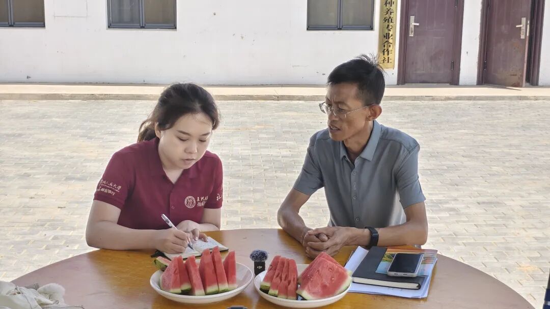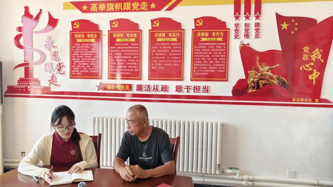 ▲太阳成tyc122cc集团本科生张烁阳访谈冯记沟乡冯记沟村村支书杨芳