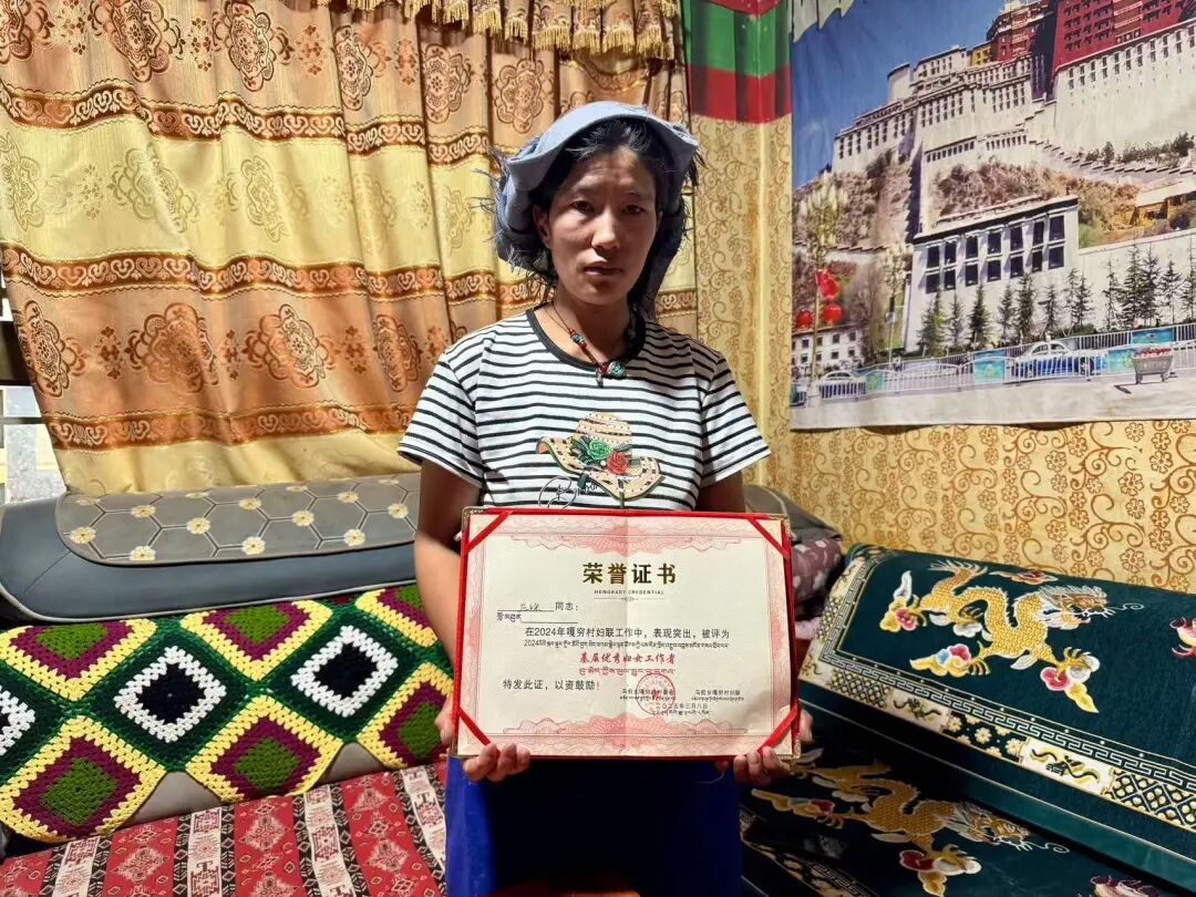 ▲女主人益珠及所获妇联优秀工作奖状