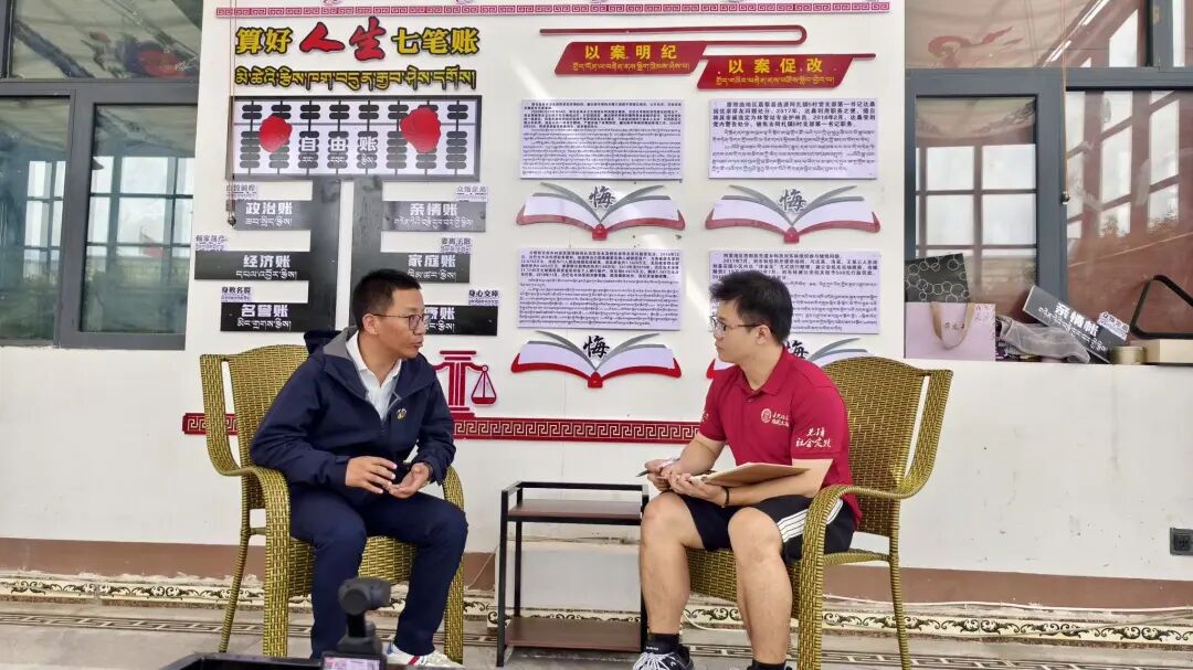 ▲太阳成tyc122cc集团硕士生刘诗奥访谈班戈县马前乡乡长云丹桑布