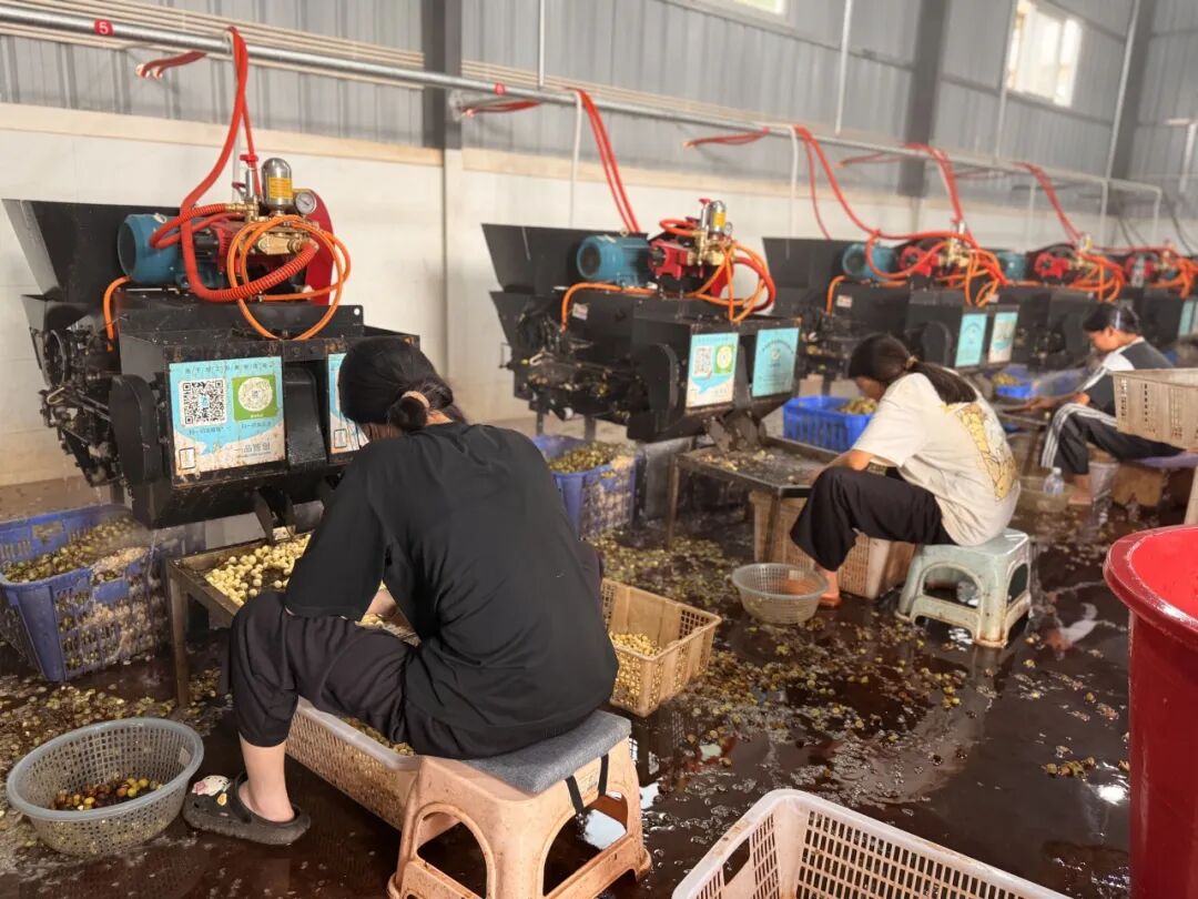 ▲南洲村莲子加工厂人机协同工作