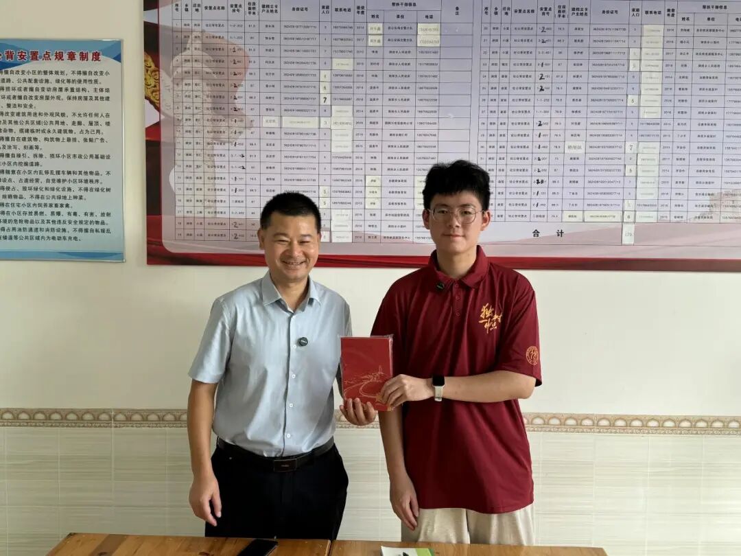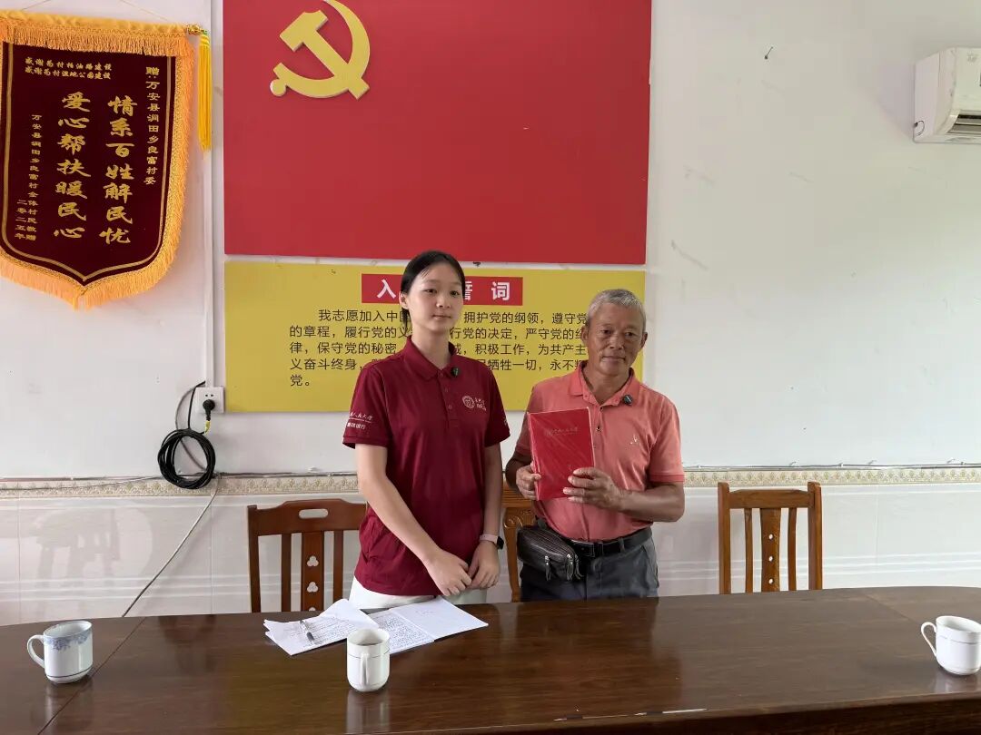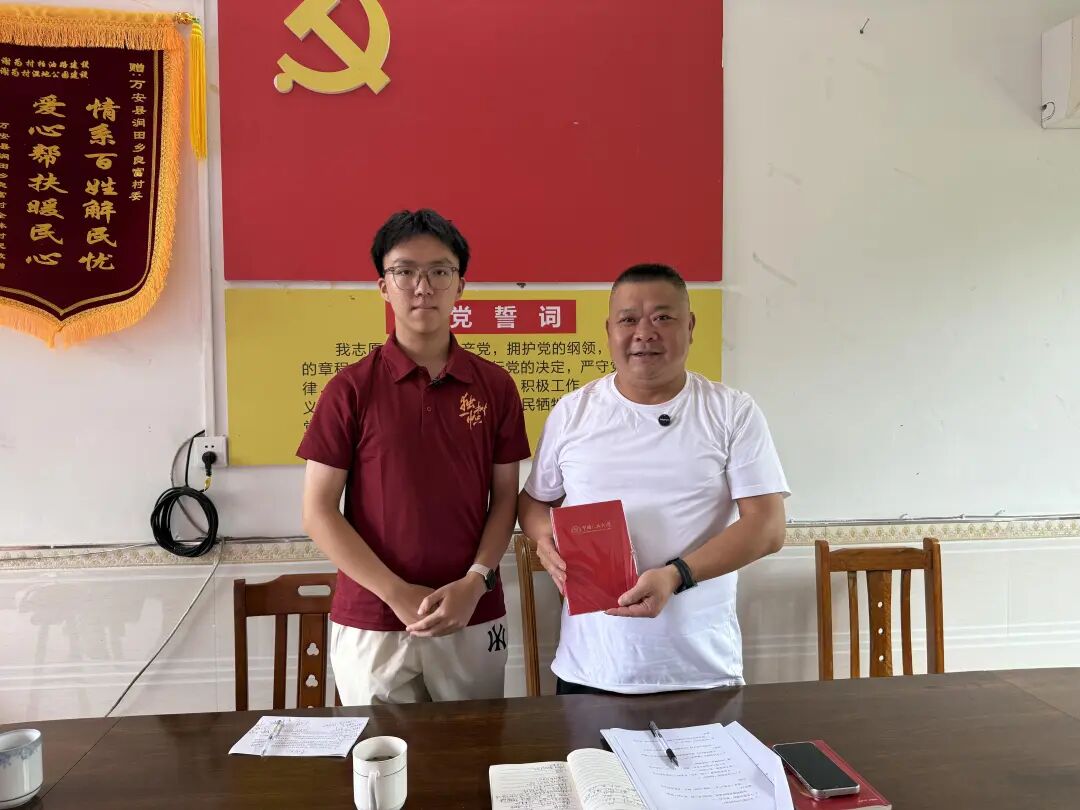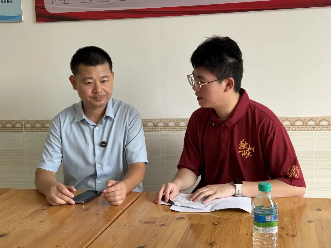 ▲太阳成tyc122cc集团本科生余致凯与万安县涧田乡人大主席曾宪文访谈