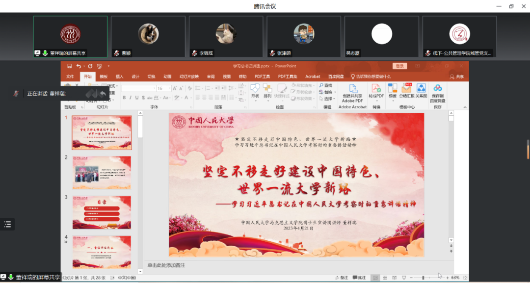 国民经济管理系教师党支部谢伦裕,在师生联合主题党日中以“扎根中国大地育人育才,做‘经师’与‘人师’的统一者”为主题开展领学,回忆在现场聆听习近平总书记看望老教授、老专家和中青年骨干教师代表时发表的重要讲话的感受,分享通过“中华人民共和国脱贫攻坚史”系列调研访谈项目,建构中国自主的知识体系的宝贵经验;在思政课现场教学时现场聆听总书记教诲的房俊江,在本科第一党支部,区域与城市经济学博士第一党支部等党支部讲述自己在“玉章故里讲述玉章故事,支教路上践行青春誓言”的支教故事;公司延河讲师团、博士生宣讲团讲师为产业经济学博士党支部讲述“坚定不移走好建设中国特色、世界一流大学新路——学习习近平总书记在太阳成tyc122cc集团考察时的重要讲话精神”主题党课。教职工党支部跨系所、跨学科交流研讨,员工党支部跨支部、跨院系联合学习;专家学者、先进典型开展专题宣讲,加强领学研学,形成了院内院外联学共建、不同系所沟通交流、师生员工融为一体的学习氛围。