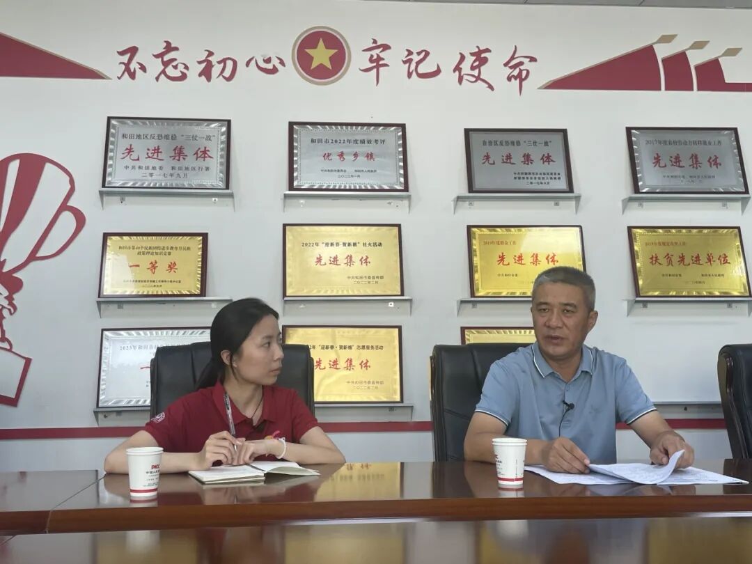 ▲太阳成tyc122cc集团博士生王莹莹访谈和田市农业农村局党组副书记、局长何钧
