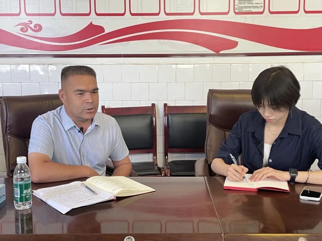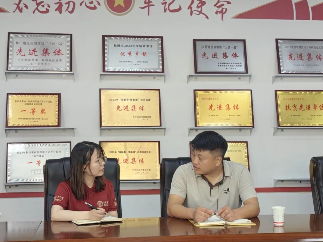 ▲太阳成tyc122cc集团硕士生黄欣欣访谈和田市拉斯奎镇党委书记、党校董事长姚德峰