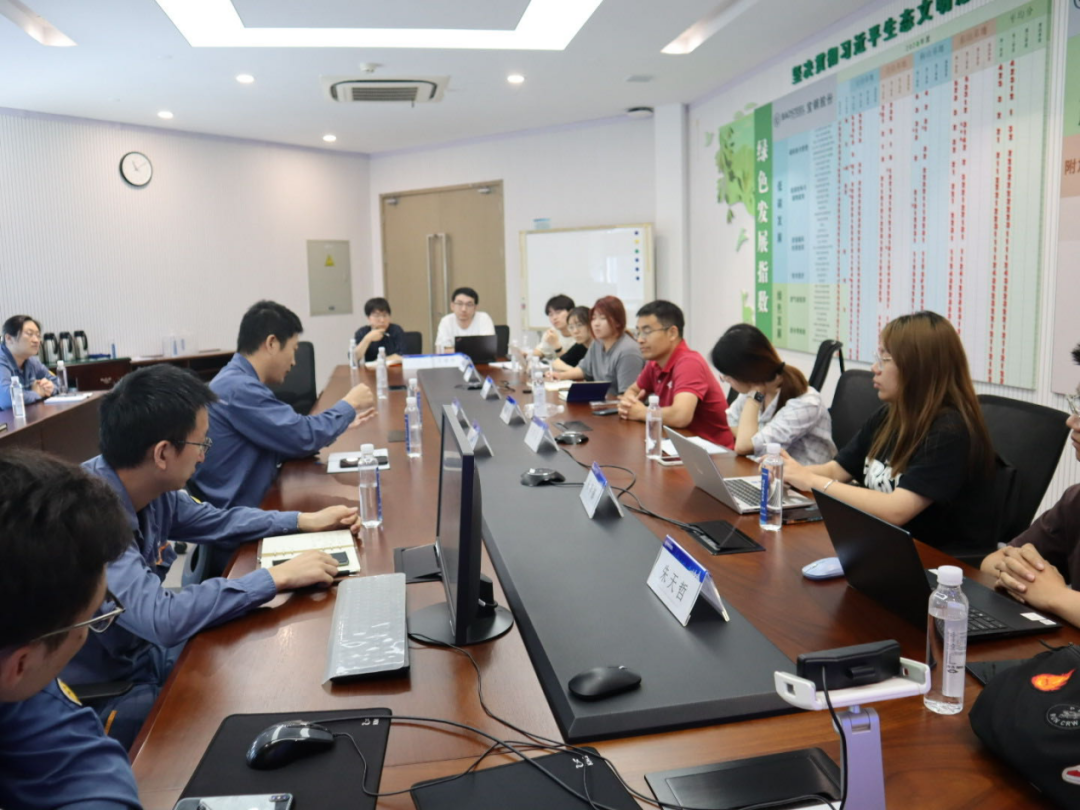 8月4日上午,调研团参加宝钢能源环保部能源技术室、环保技术室和能源环保管控中心举办的座谈会,双方围绕钢铁生产流程、减碳环保措施、数字化能源体系、智慧平台、减碳成本与效果、国内布局与国际竞争力、面临的问题与挑战等多个方面展开深入的讨论与学习。能源环保部技术人员向同学们具体介绍了宝钢基地在废气超低排、废水零排放和固废不出厂的绿色发展方面取得的成就。